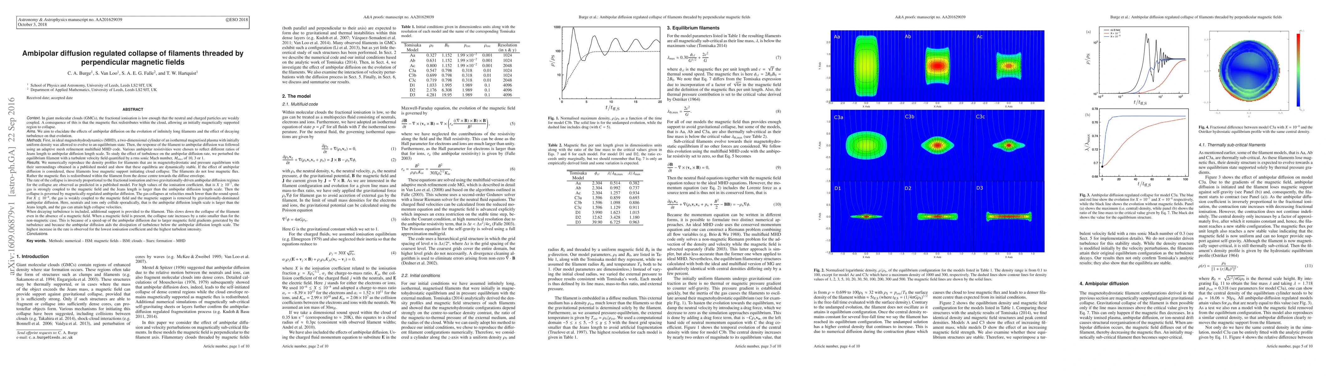 This paper investigates the collapse of filaments threaded by perpendicular magnetic fields under the influence of ambipolar diffusion. It finds that ambipolar diffusion initiates collapse by redistributing magnetic flux, leading to two distinct regimes based on ionisation levels. The presence of decaying turbulence provides additional support, slowing the collapse rate.
