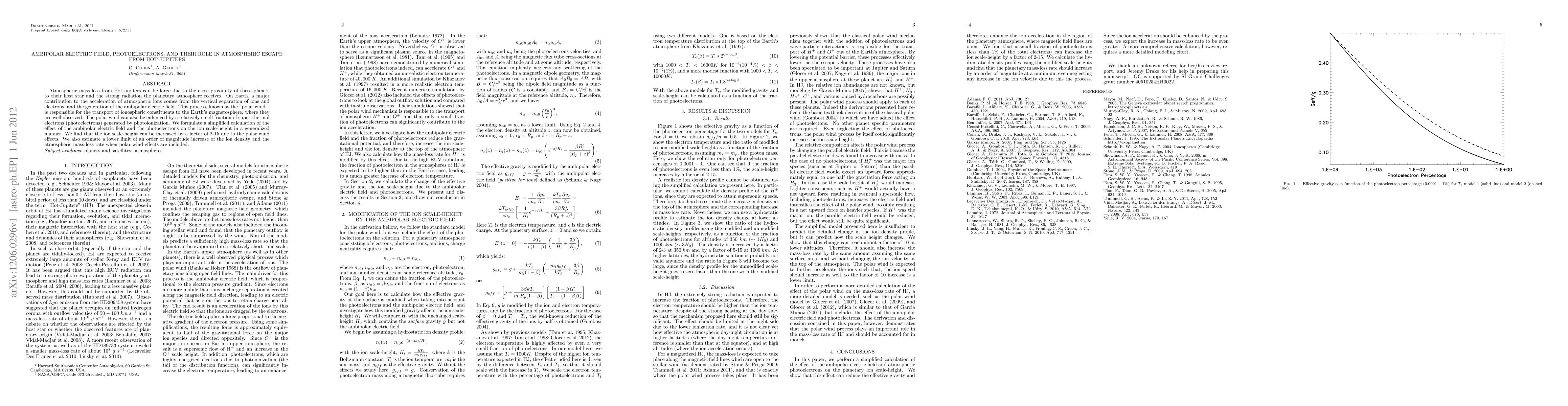 Research finds that ambipolar electric fields and photoelectrons can significantly increase atmospheric escape from Hot-jupiters, leading to a 2-15 times increase in ion scale-height and an order of magnitude increase in mass-loss rate.