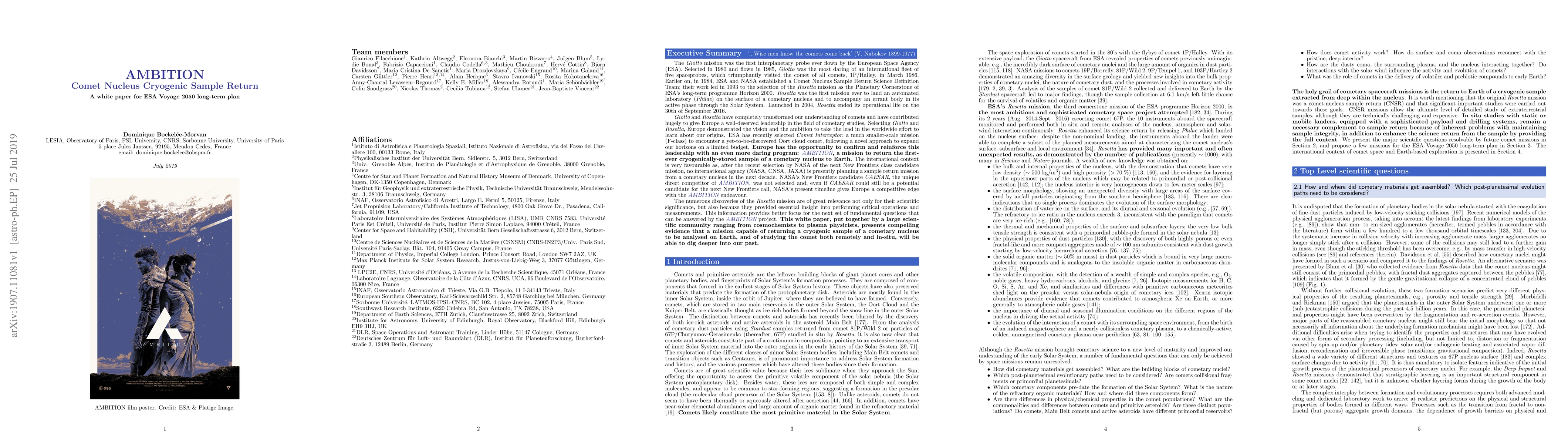 This white paper proposes that AMBITION, a Comet Nucleus Sample Return mission, be a cornerstone of ESA's Voyage 2050 programme. We summarise some of the most important questions still open in cometary science after the successes of the Rosetta mission, many of which require sample analysis using techniques that are only possible in laboratories on Earth. We then summarise measurements, instrumentation and mission scenarios that can address these questions, with a recommendation that ESA select an ambitious cryogenic sample return mission. Rendezvous missions to Main Belt comets and Centaurs are compelling cases for M-class missions, expanding our knowledge by exploring new classes of comets. AMBITION would engage a wide community, drawing expertise from a vast range of disciplines within planetary science and astrophysics. With AMBITION, Europe will continue its leadership in the exploration of the most primitive Solar System bodies.