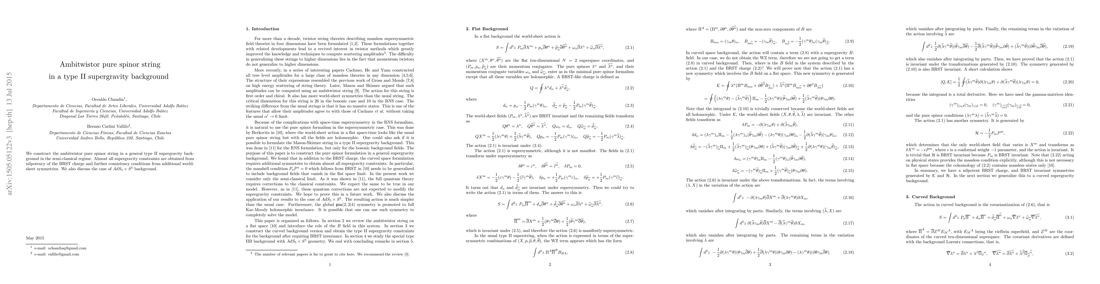 This paper constructs the ambitwistor pure spinor string theory in a general type II supergravity background using BRST charge nilpotency and additional world-sheet symmetries. It also specifically examines the $AdS_5\times S^5$ background.