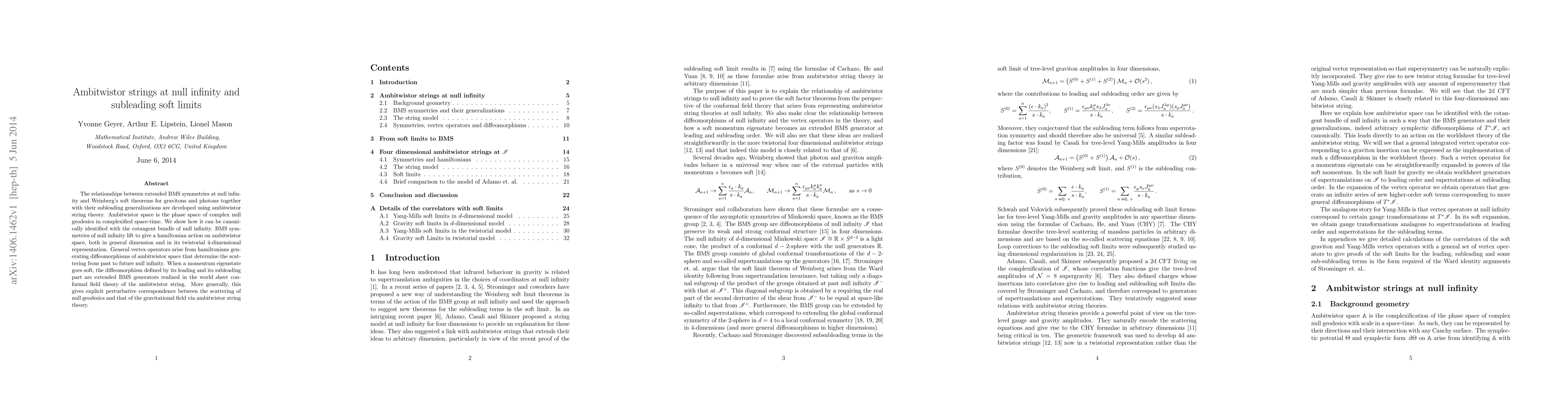 The relationships between extended BMS symmetries at null infinity and Weinberg's soft theorems for gravitons and photons together with their subleading generalizations are developed using ambitwistor string theory. Ambitwistor space is the phase space of complex null geodesics in complexified space-time. We show how it can be canonically identified with the cotangent bundle of null infinity. BMS symmetries of null infinity lift to give a hamiltonian action on ambitwistor space, both in general dimension and in its twistorial 4-dimensional representation. General vertex operators arise from hamiltonians generating diffeomorphisms of ambitwistor space that determine the scattering from past to future null infinity. When a momentum eigenstate goes soft, the diffeomorphism defined by its leading and its subleading part are extended BMS generators realized in the world sheet conformal field theory of the ambitwistor string. More generally, this gives explicit perturbative correspondence between the scattering of null geodesics and that of the gravitational field via ambitwistor string theory.