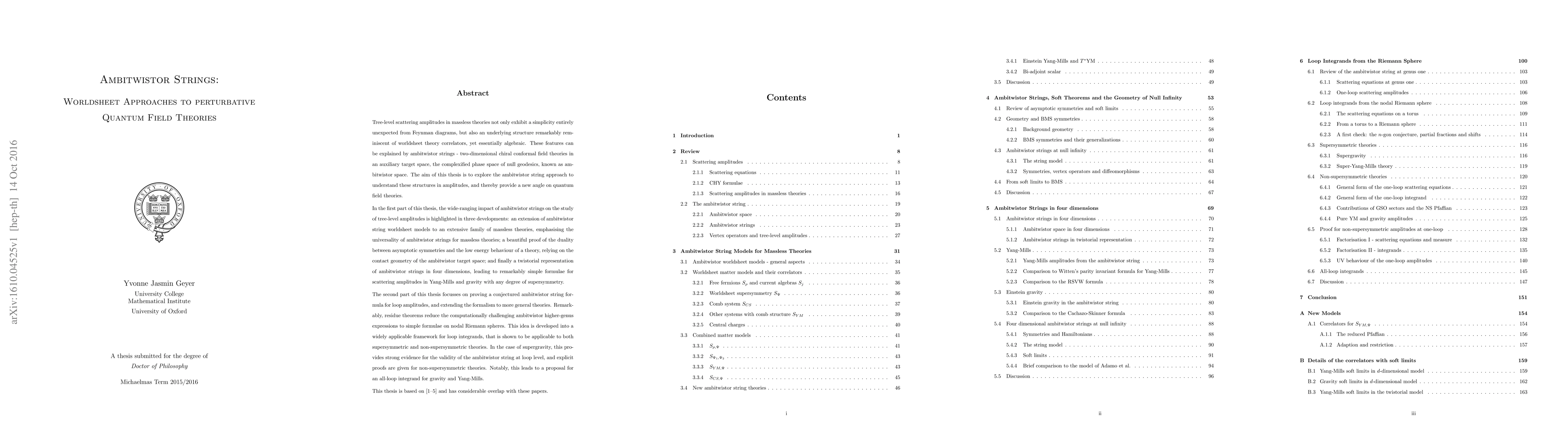 This paper explores ambitwistor strings as a new approach to understanding perturbative quantum field theories, particularly focusing on tree-level scattering amplitudes in massless theories. It introduces and extends the ambitwistor string formalism, providing a new perspective on the duality between asymptotic symmetries and worldsheet conformal field theories, and offering a framework for loop amplitudes in both supersymmetric and non-supersymmetric theories.
