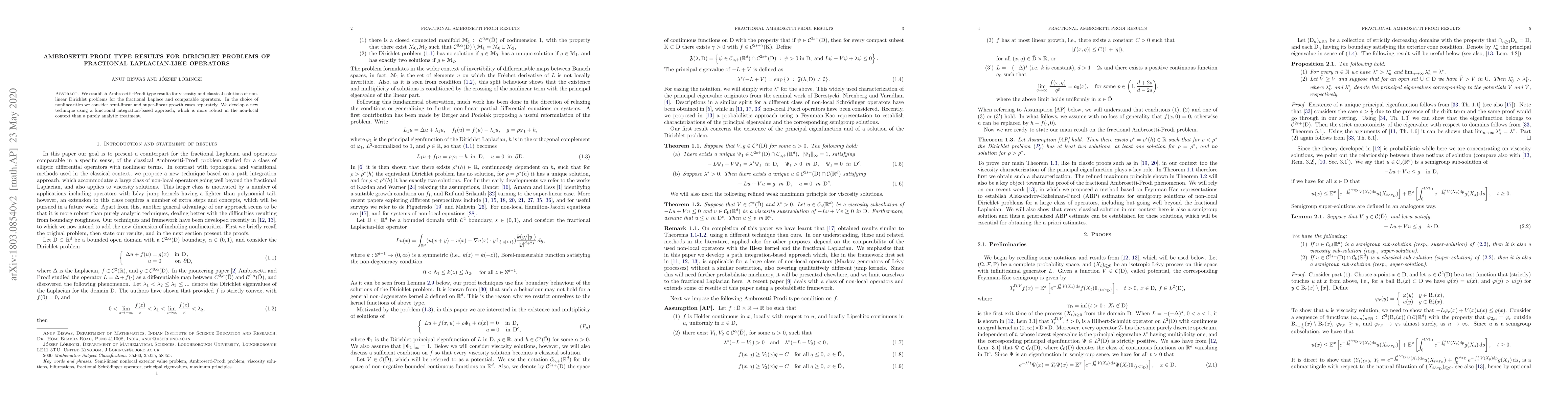 We establish Ambrosetti--Prodi type results for viscosity and classical solutions of nonlinear Dirichlet problems for the fractional Laplace and comparable operators. In the choice of nonlinearities we consider semi-linear and super-linear growth cases separately. We develop a new technique using a functional integration-based approach, which is more robust in the non-local context than a purely analytic treatment.
