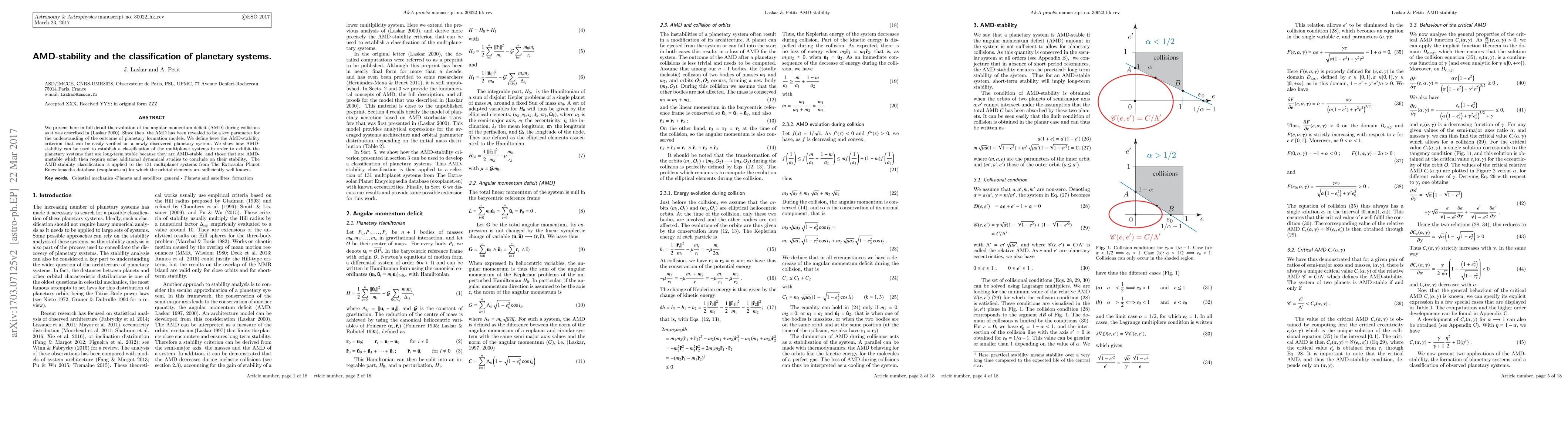We present here in full detail the evolution of the angular momentum deficit (AMD) during collisions as it was described in (Laskar, PRL,2000). Since then, the AMD has been revealed to be a key parameter for the understanding of the outcome of planetary formation models. We define here the AMD-stability criterion that can be easily verified on a newly discovered planetary system. We show how AMD-stability can be used to establish a classification of the multiplanet systems in order to exhibit the planetary systems that are long-term stable because they are AMD-stable, and those that are AMD-unstable which then require some additional dynamical studies to conclude on their stability. The AMD-stability classification is applied to the 131 multiplanet systems from The Extrasolar Planet Encyclopaedia database (exoplanet.eu) for which the orbital elements are sufficiently well known.