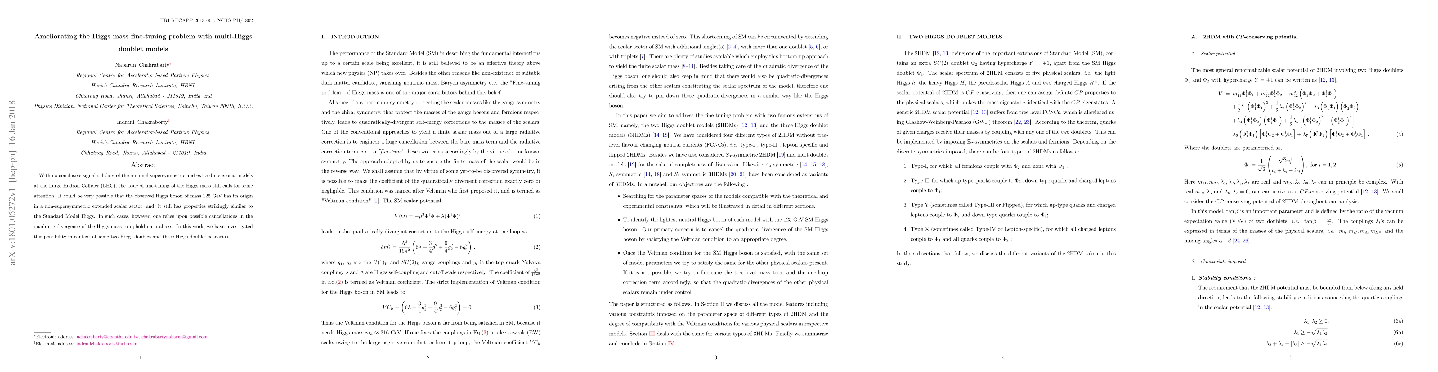 This paper explores the fine-tuning problem of the Higgs mass in the absence of evidence for supersymmetric or extra-dimensional models, proposing that a non-supersymmetric extended scalar sector with multiple Higgs doublets could provide natural solutions through cancellations in quadratic divergences. The study investigates two and three Higgs doublet scenarios for their potential to address this issue.