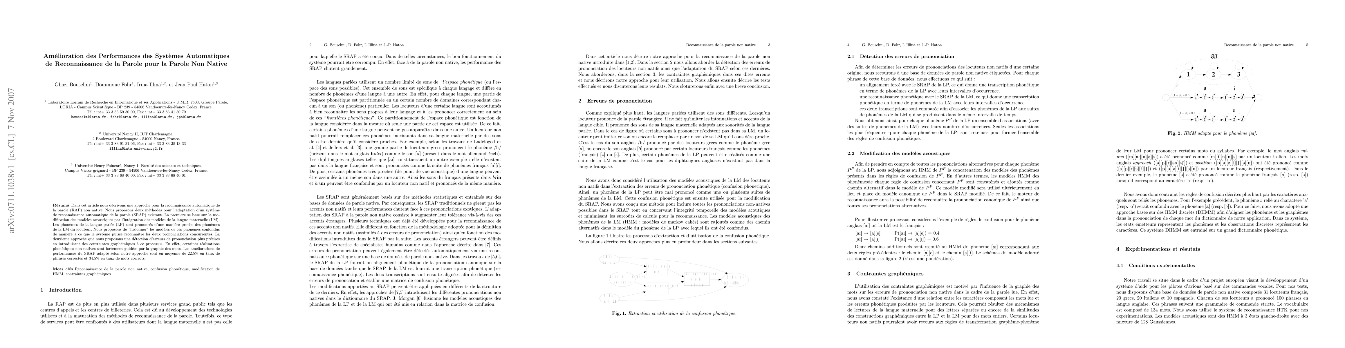 In this article, we present an approach for non native automatic speech recognition (ASR). We propose two methods to adapt existing ASR systems to the non-native accents. The first method is based on the modification of acoustic models through integration of acoustic models from the mother tong. The phonemes of the target language are pronounced in a similar manner to the native language of speakers. We propose to combine the models of confused phonemes so that the ASR system could recognize both concurrent pronounciations. The second method we propose is a refinment of the pronounciation error detection through the introduction of graphemic constraints. Indeed, non native speakers may rely on the writing of words in their uttering. Thus, the pronounctiation errors might depend on the characters composing the words. The average error rate reduction that we observed is (22.5%) relative for the sentence error rate, and 34.5% (relative) in word error rate.