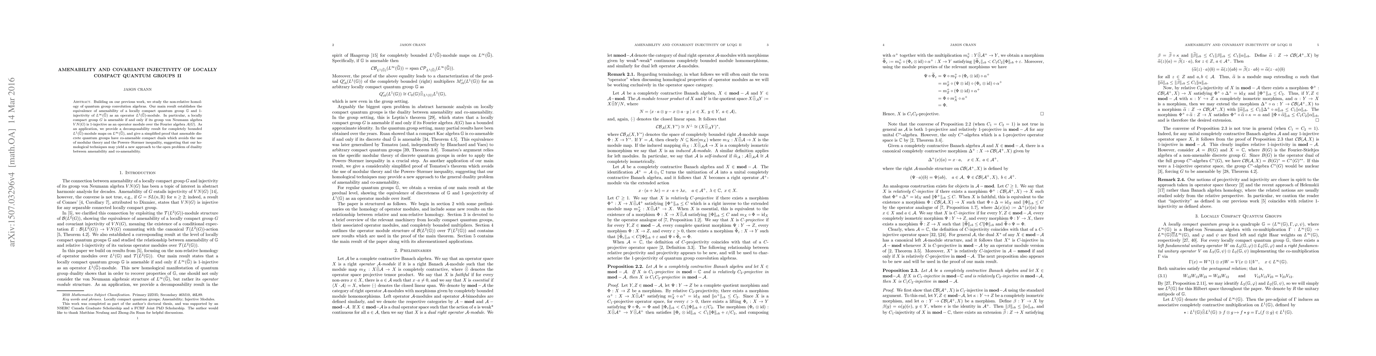 Building on our previous work, we study the non-relative homology of quantum group convolution algebras. Our main result establishes the equivalence of amenability of a locally compact quantum group $\mathbb{G}$ and 1-injectivity of $L^{\infty}(\widehat{\mathbb{G}})$ as an operator $L^1(\widehat{\mathbb{G}})$-module. In particular, a locally compact group $G$ is amenable if and only if its group von Neumann algebra $VN(G)$ is 1-injective as an operator module over the Fourier algebra $A(G)$. As an application, we provide a decomposability result for completely bounded $L^1(\widehat{\mathbb{G}})$-module maps on $L^{\infty}(\widehat{\mathbb{G}})$, and give a simplified proof that amenable discrete quantum groups have co-amenable compact duals which avoids the use of modular theory and the Powers--St{\o}rmer inequality, suggesting that our homological techniques may yield a new approach to the open problem of duality between amenability and co-amenability.