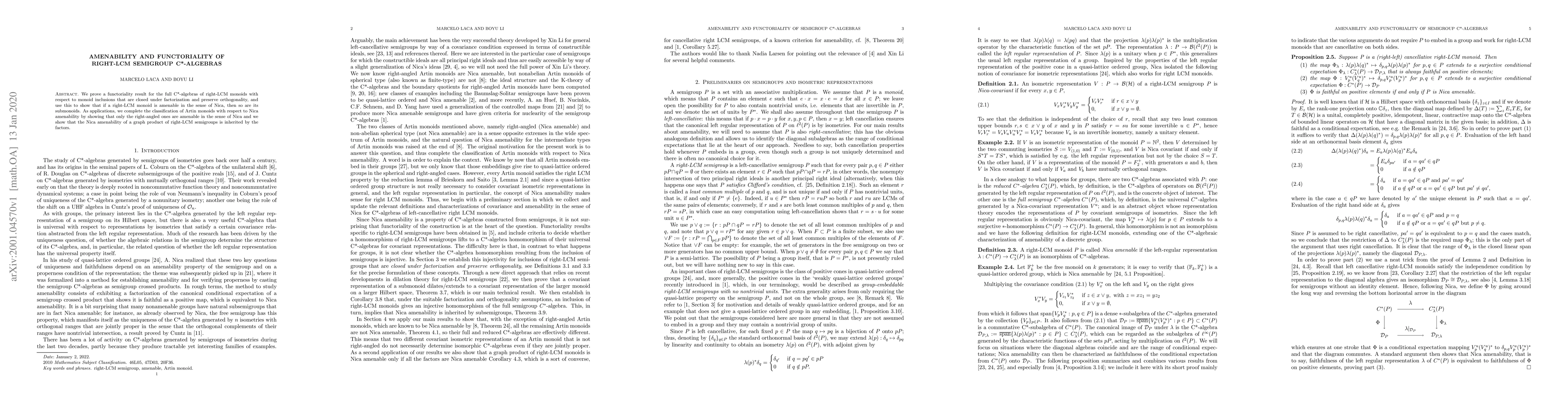 This paper establishes a functoriality result for C*-algebras of right-LCM monoids, proving that amenability in the Nica sense is preserved in submonoids. It concludes by classifying Artin monoids and demonstrating the inheritance of Nica amenability in graph products.