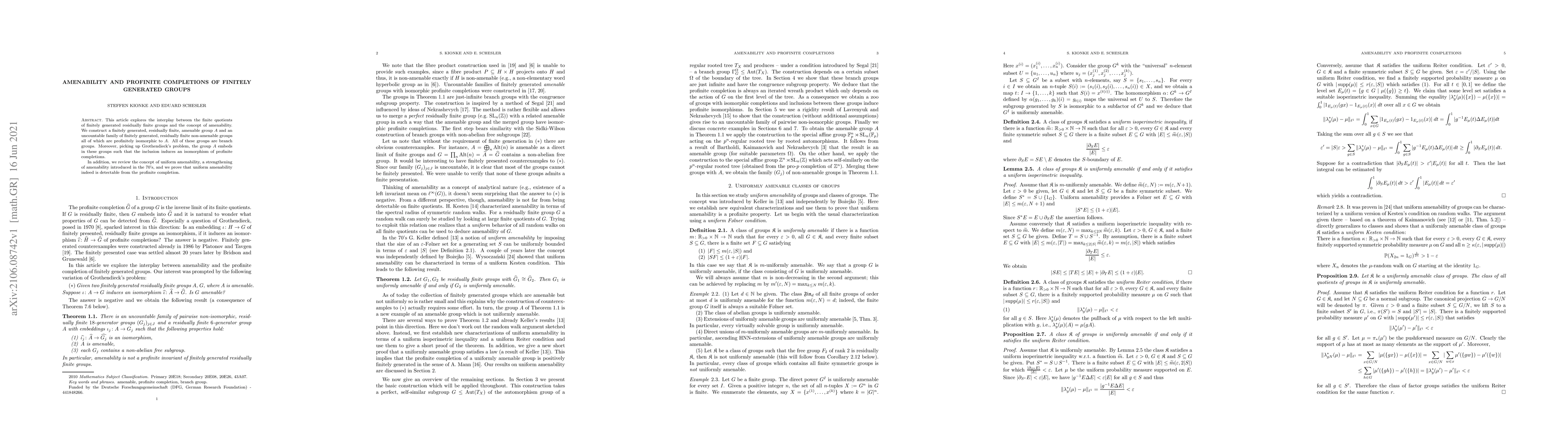 This article explores the interplay between the finite quotients of finitely generated residually finite groups and the concept of amenability. We construct a finitely generated, residually finite, amenable group $A$ and an uncountable family of finitely generated, residually finite non-amenable groups all of which are profinitely isomorphic to $A$. All of these groups are branch groups. Moreover, picking up Grothendieck's problem, the group $A$ embeds in these groups such that the inclusion induces an isomorphism of profinite completions. In addition, we review the concept of uniform amenability, a strengthening of amenability introduced in the 70's, and we prove that uniform amenability indeed is detectable from the profinite completion.