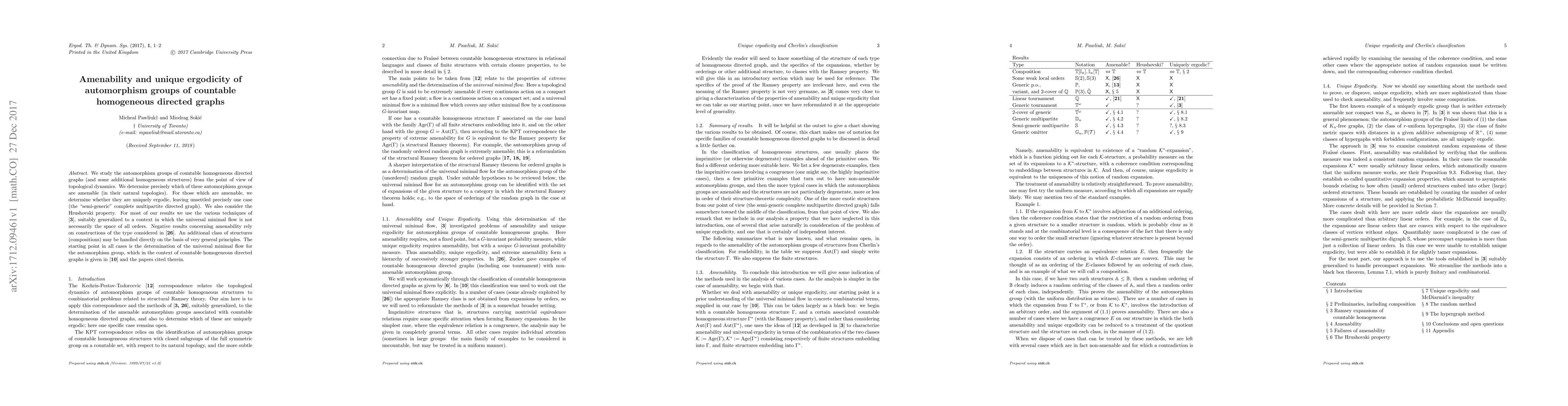 We study the automorphism groups of countable homogeneous directed graphs (and some additional homogeneous structures) from the point of view of topological dynamics. We determine precisely which of these automorphism groups are amenable (in their natural topologies). For those which are amenable, we determine whether they are uniquely ergodic, leaving unsettled precisely one case (the "semi-generic" complete multipartite directed graph). We also consider the Hrushovski property. For most of our results we use the various techniques of [3], suitably generalized to a context in which the universal minimal flow is not necessarily the space of all orders. Negative results concerning amenability rely on constructions of the type considered in [26]. An additional class of structures (compositions) may be handled directly on the basis of very general principles. The starting point in all cases is the determination of the universal minimal flow for the automorphism group, which in the context of countable homogeneous directed graphs is given in [10] and the papers cited therein.