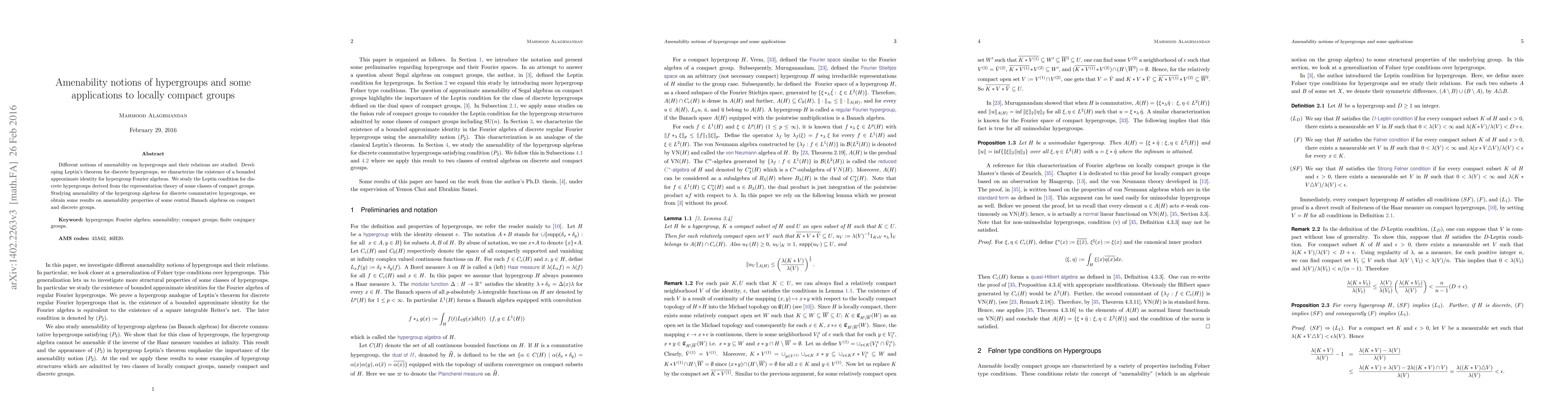 This paper explores various notions of amenability for hypergroups and their connections, extending Leptin's theorem to characterize bounded approximate identities in hypergroup Fourier algebras. It also investigates the Leptin condition in discrete hypergroups linked to the representation theory of compact groups, leading to insights on the amenability of central Banach algebras in compact and discrete groups.