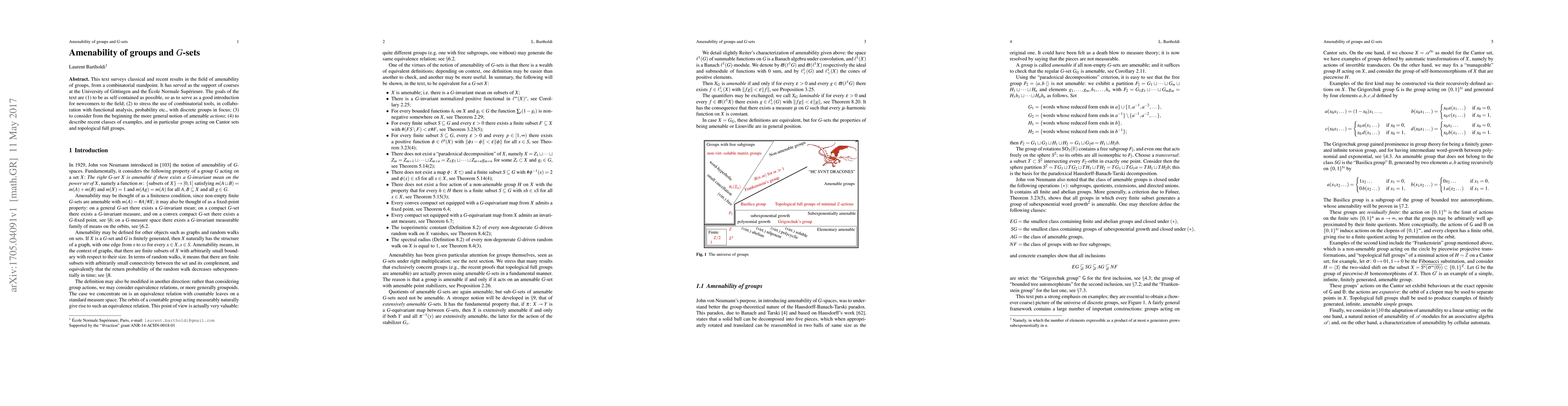 This text surveys classical and recent results in the field of amenability of groups, from a combinatorial standpoint. It has served as the support of courses at the University of G\"ottingen and the \'Ecole Normale Sup\'erieure. The goals of the text are (1) to be as self-contained as possible, so as to serve as a good introduction for newcomers to the field; (2) to stress the use of combinatorial tools, in collaboration with functional analysis, probability etc., with discrete groups in focus; (3) to consider from the beginning the more general notion of amenable actions; (4) to describe recent classes of examples, and in particular groups acting on Cantor sets and topological full groups.