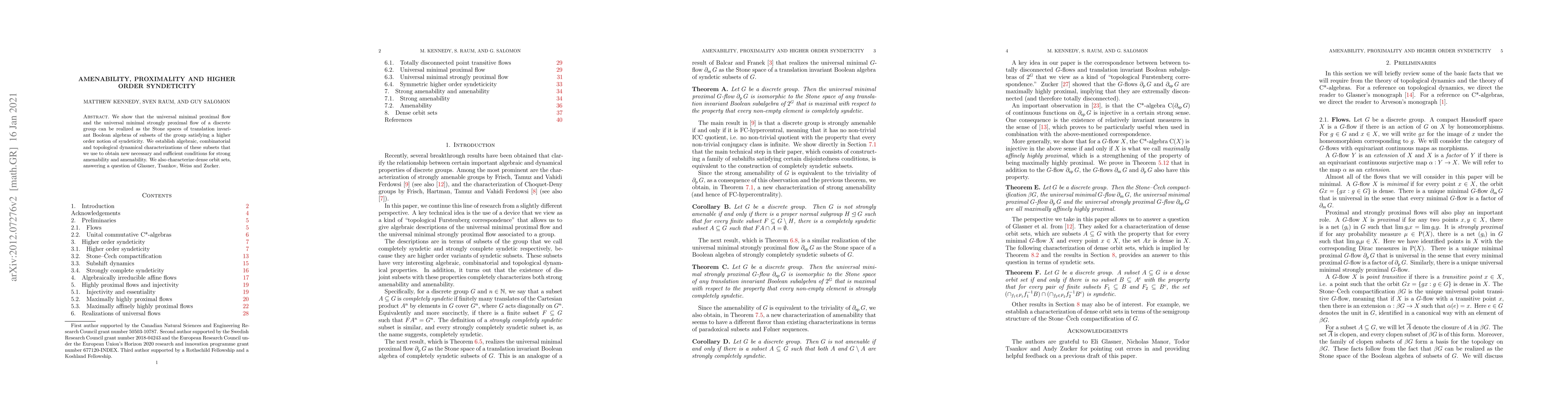 We show that the universal minimimal proximal flow and the universal minimal strongly proximal flow of a discrete group can be realized as the Stone spaces of translation invariant Boolean algebras of subsets of the group satisfying a higher order notion of syndeticity. We establish algebraic, combinatorial and topological dynamical characterizations of these subsets that we use to obtain new necessary and sufficient conditions for strong amenability and amenability. We also characterize dense orbit sets, answering a question of Glasner, Tsankov, Weiss and Zucker.
