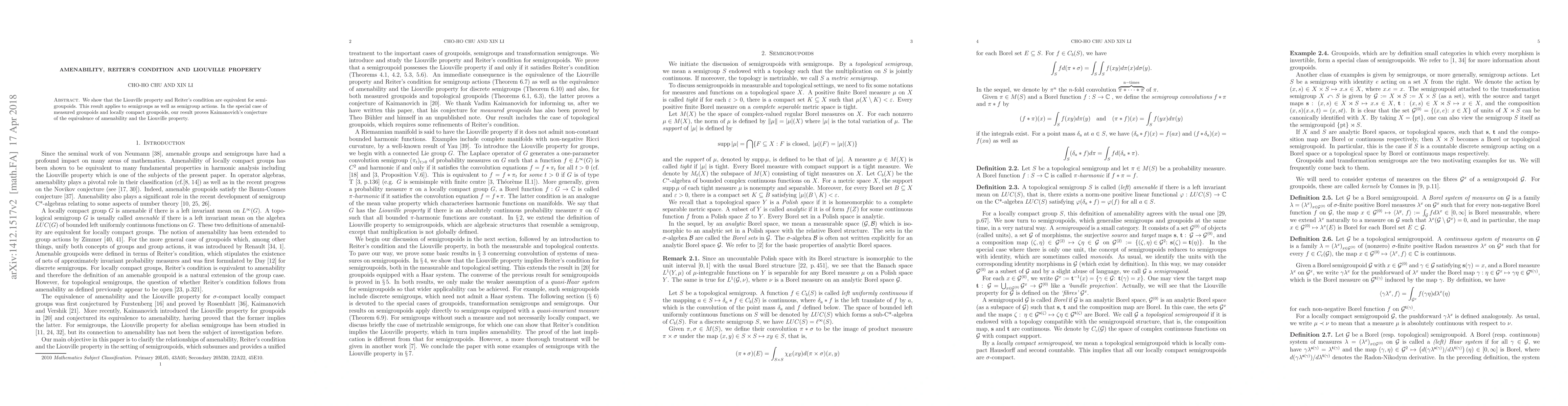 This paper establishes the equivalence of the Liouville property and Reiter's condition for semigroupoids, extending the result to semigroups and semigroup actions. It also confirms Kaimanovich's conjecture by proving the equivalence of amenability and the Liouville property for measured and locally compact groupoids.