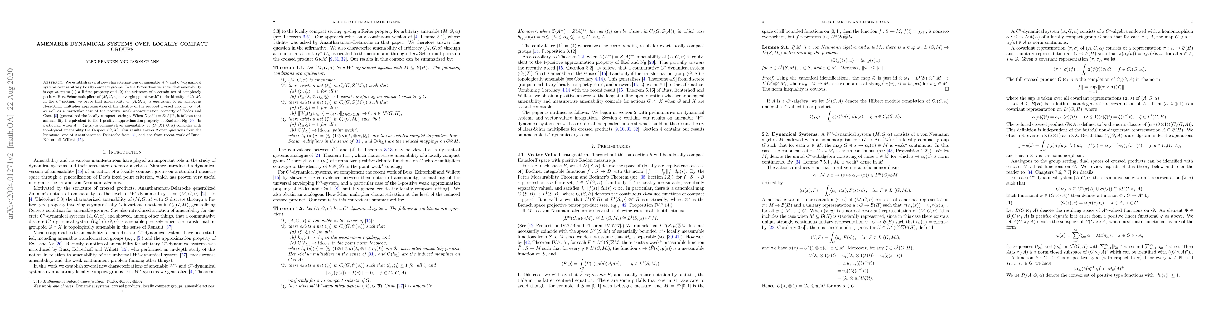This paper provides new characterizations of amenable $W^*$- and $C^*$-dynamical systems over locally compact groups, showing that amenability is equivalent to specific properties involving Herz-Schur multipliers and approximation properties. The results resolve two open questions from the literature.