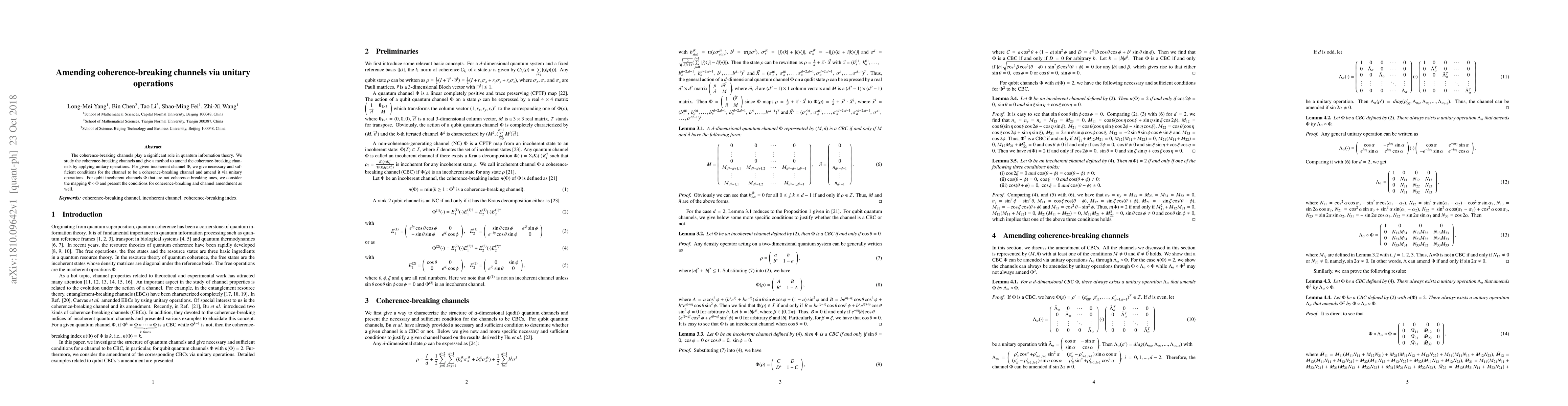 The paper provides detailed mathematical characterizations of coherence-breaking channels and presents unitary operations to amend these channels, contributing to the theoretical framework of quantum information theory.