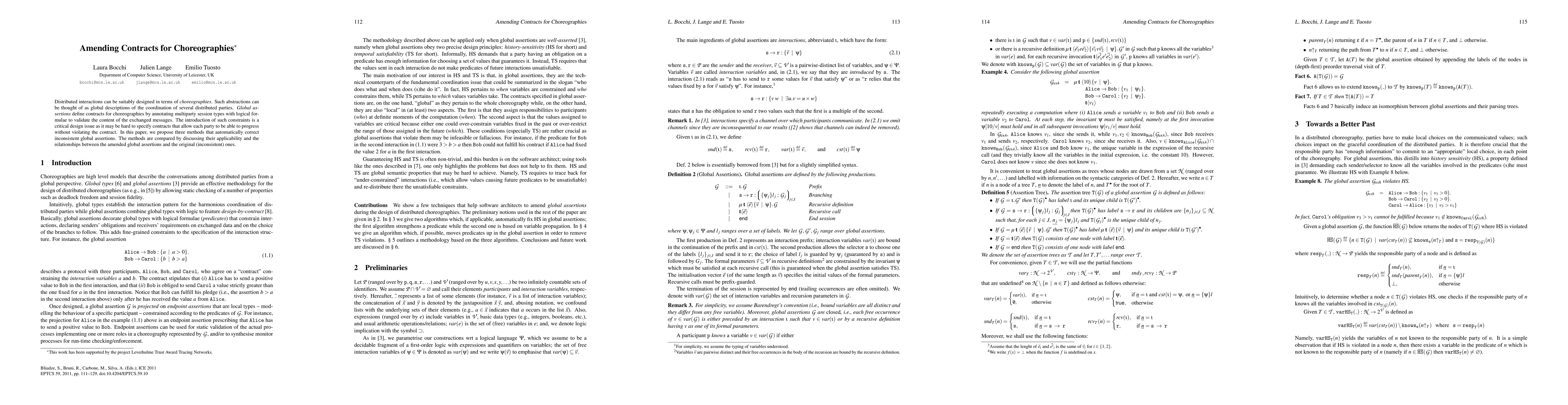 This paper proposes three methods to automatically amend inconsistent global assertions in choreographies, ensuring that distributed interactions adhere to valid contracts without violating the design constraints. The effectiveness of each method is evaluated based on its applicability and how it modifies the original inconsistent assertions.