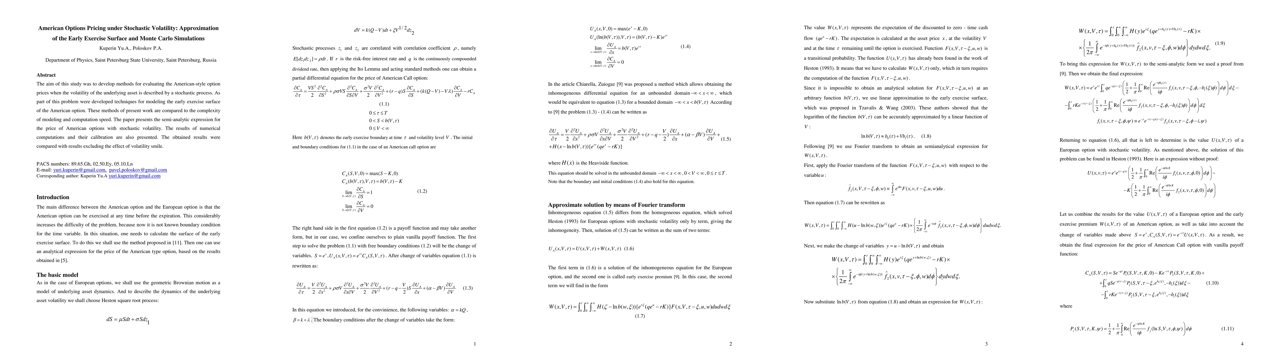 This study develops methods for pricing American options under stochastic volatility, including a semi-analytic expression for option prices and techniques for modeling the early exercise surface. The results are compared to traditional methods, showing improved accuracy and computational efficiency.