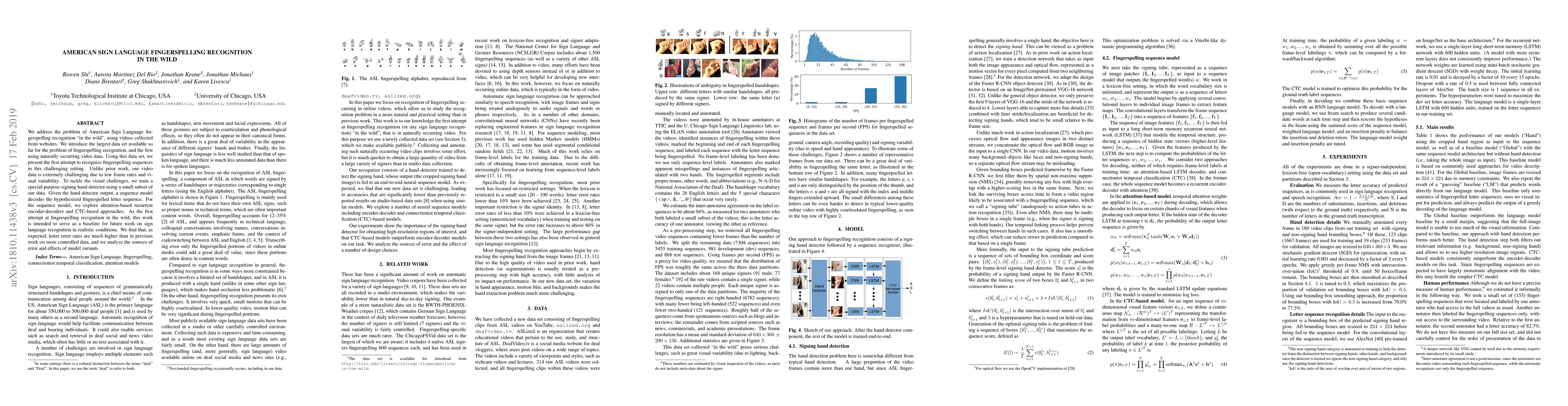 This paper tackles the challenge of recognizing American Sign Language fingerspelling in real-world videos, introducing a large dataset and a novel hand detector to address low frame rates and visual variability. The study explores sequence models for decoding fingerspelled letters, finding higher error rates compared to controlled settings and analyzing error sources.
