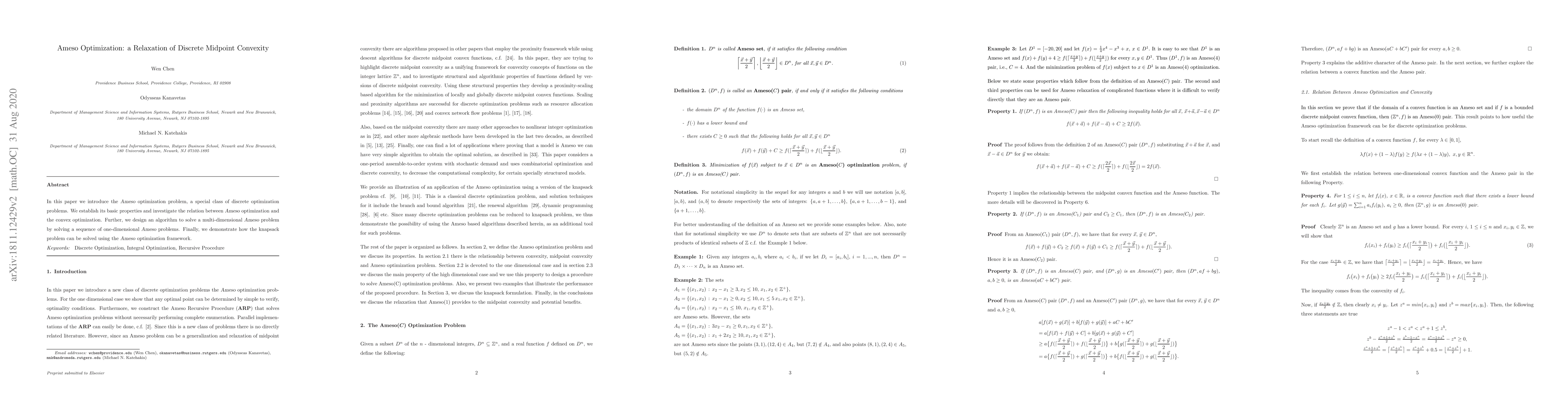 In this paper we introduce the Ameso optimization problem, a special class of discrete optimization problems. We establish its basic properties and investigate the relation between Ameso optimization and the convex optimization. Further, we design an algorithm to solve a multi-dimensional Ameso problem by solving a sequence of one-dimensional Ameso problems. Finally, we demonstrate how the knapsack problem can be solved using the Ameso optimization framework.