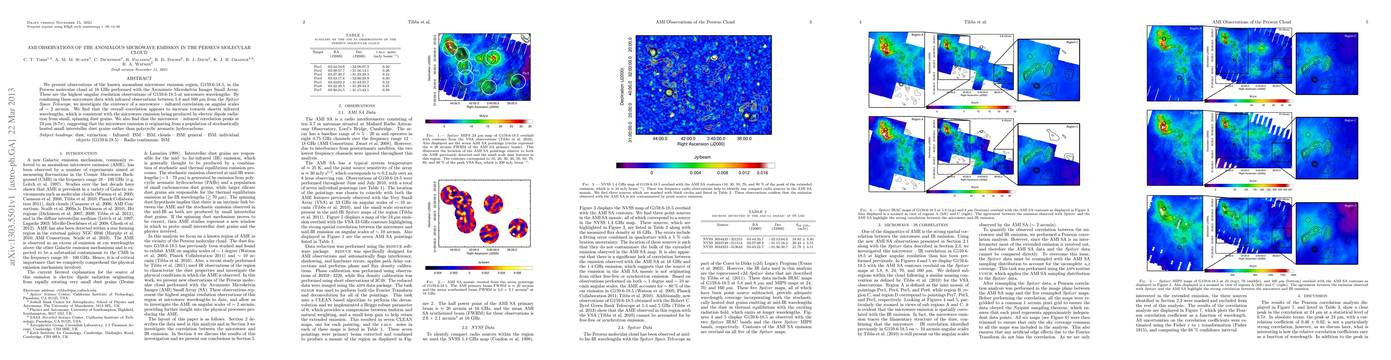 We present observations of the known anomalous microwave emission region, G159.6-18.5, in the Perseus molecular cloud at 16 GHz performed with the Arcminute Microkelvin Imager Small Array. These are the highest angular resolution observations of G159.6-18.5 at microwave wavelengths. By combining these microwave data with infrared observations between 5.8 and 160 \mu m from the Spitzer Space Telescope, we investigate the existence of a microwave - infrared correlation on angular scales of ~2 arcmin. We find that the overall correlation appears to increase towards shorter infrared wavelengths, which is consistent with the microwave emission being produced by electric dipole radiation from small, spinning dust grains. We also find that the microwave - infrared correlation peaks at 24 \mu m (6.7\sigma), suggesting that the microwave emission is originating from a population of stochastically heated small interstellar dust grains rather than polycyclic aromatic hydrocarbons.
