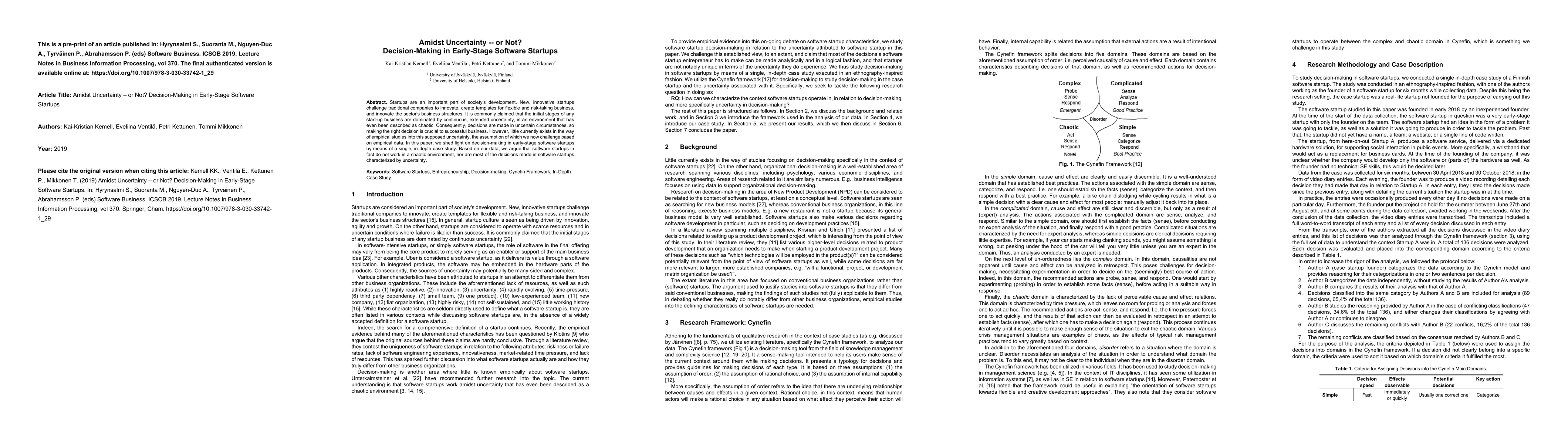 This paper examines decision-making in early-stage software startups, challenging the notion of pervasive uncertainty. Through an in-depth case study, it finds that these startups operate in a less chaotic environment than commonly believed, suggesting their decision-making processes are not uniquely uncertain compared to other firms.
