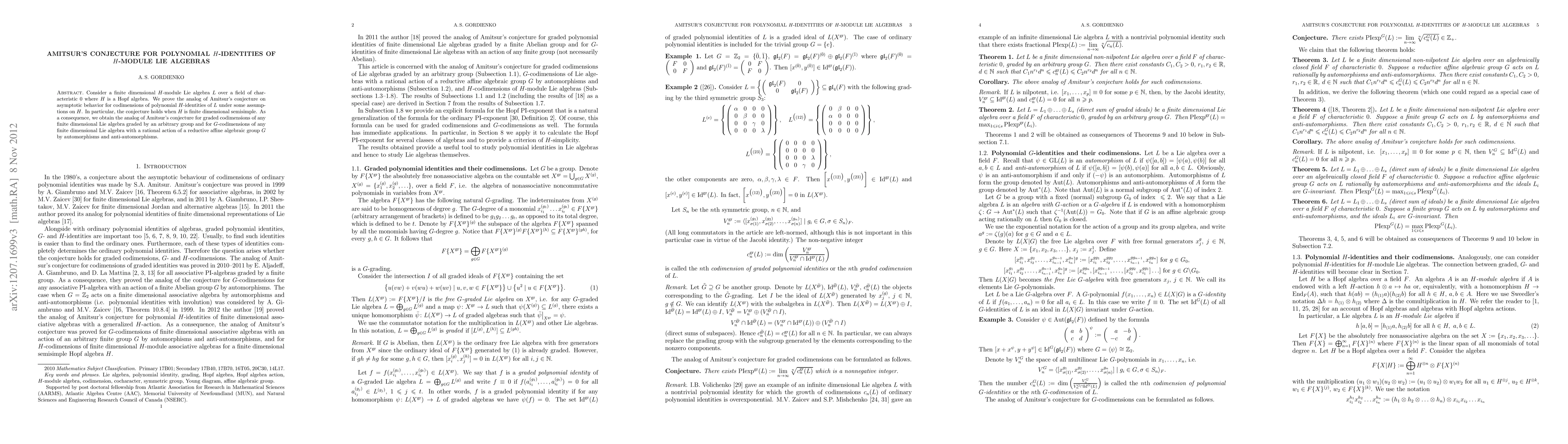 This paper proves Amitsur's conjecture for polynomial H-identities of finite dimensional H-module Lie algebras, extending it to semisimple Hopf algebras and various types of graded codimensions.