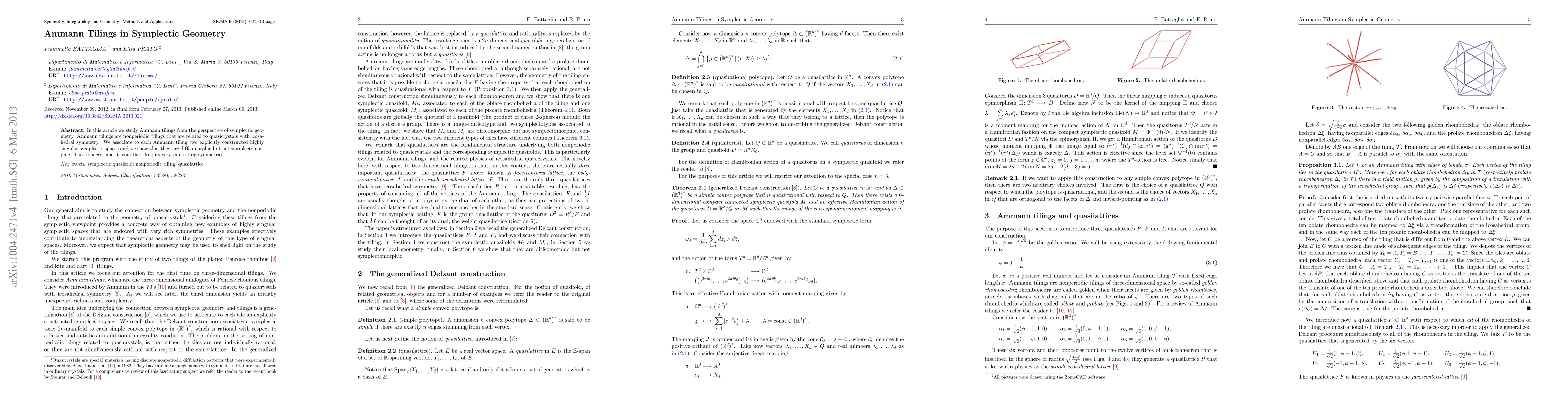 This paper explores Ammann tilings—nonperiodic quasicrystals with icosahedral symmetry—through the lens of symplectic geometry, revealing two associated singular symplectic spaces that are diffeomorphic but not symplectomorphic, showcasing intriguing inherited symmetries from the tiling.