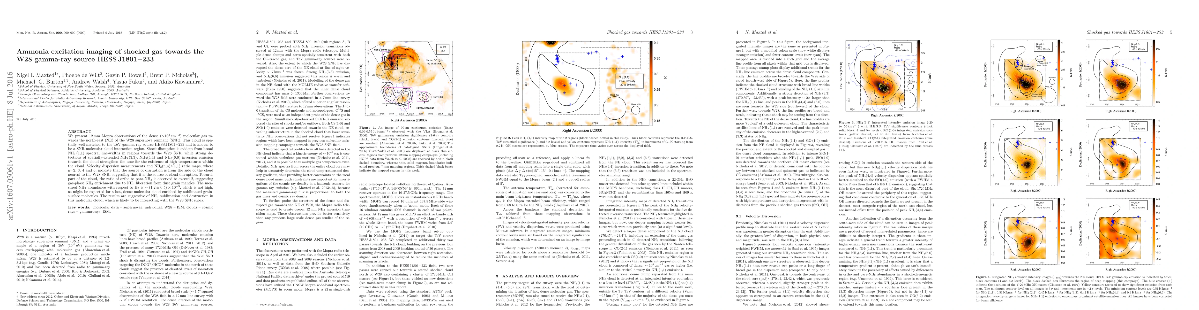 This paper presents Mopra observations of dense molecular gas near the W28 supernova remnant, revealing shock-disruption and high temperatures through broad NH3 spectral lines and extended inversion emission. The study suggests that the W28 SNR is the source of cloud disruption, with NH3 sublimation and destruction likely occurring due to interaction with the SNR shock.