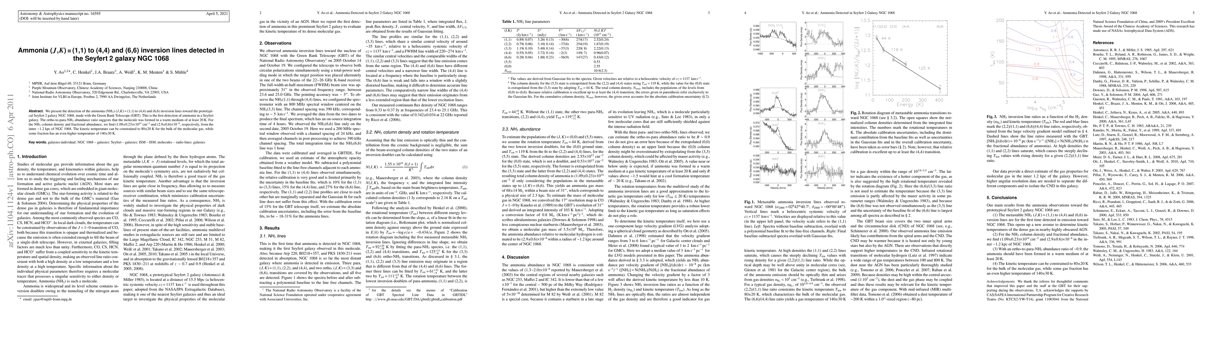 This paper detects ammonia in a Seyfert 2 galaxy, NGC 1068, revealing the first evidence of ammonia in a Seyfert galaxy and hinting at warm molecular gas conditions.