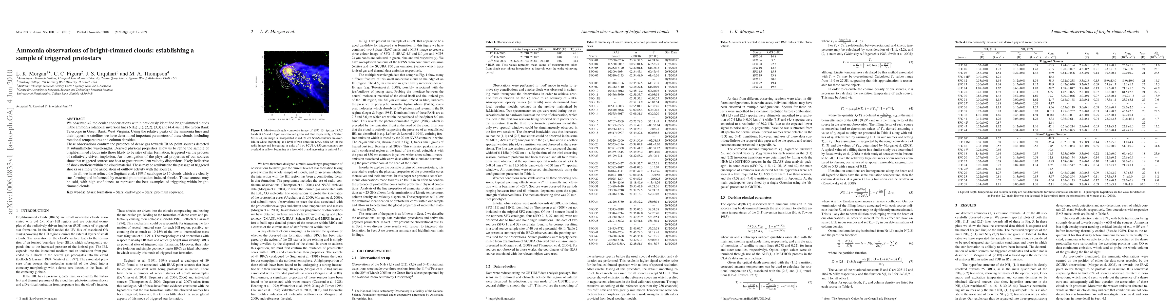 We observed 42 molecular condensations within previously identified bright-rimmed clouds in the ammonia rotational inversion lines NH3 (1,1), (2,2), (3,3) and (4,4) using the Green Bank Telescope in Green Bank, West Virginia. Using the relative peaks of the ammonia lines and their hyperfine satellites we have determined important parameters of these clouds, including rotational temperatures and column densities. These observations confirm the presence of dense gas towards IRAS point sources detected at submillimetre wavelengths. Derived physical properties allow us to refine the sample of bright-rimmed clouds into those likely to be sites of star formation, triggered via the process of radiatively-driven implosion. An investigation of the physical properties of our sources show that triggered sources are host to greater turbulent velocity dispersions, likely indicative of shock motions within the cloud material. These may be attributed to the passage of triggered shocks or simply the association of outflow activity with the sources. In all, we have refined the Sugitani et al. (1991) catalogue to 15 clouds which are clearly star-forming and influenced by external photoionisation-induced shocks. These sources may be said, with high confidence, to represent the best examples of triggering within bright-rimmed clouds.