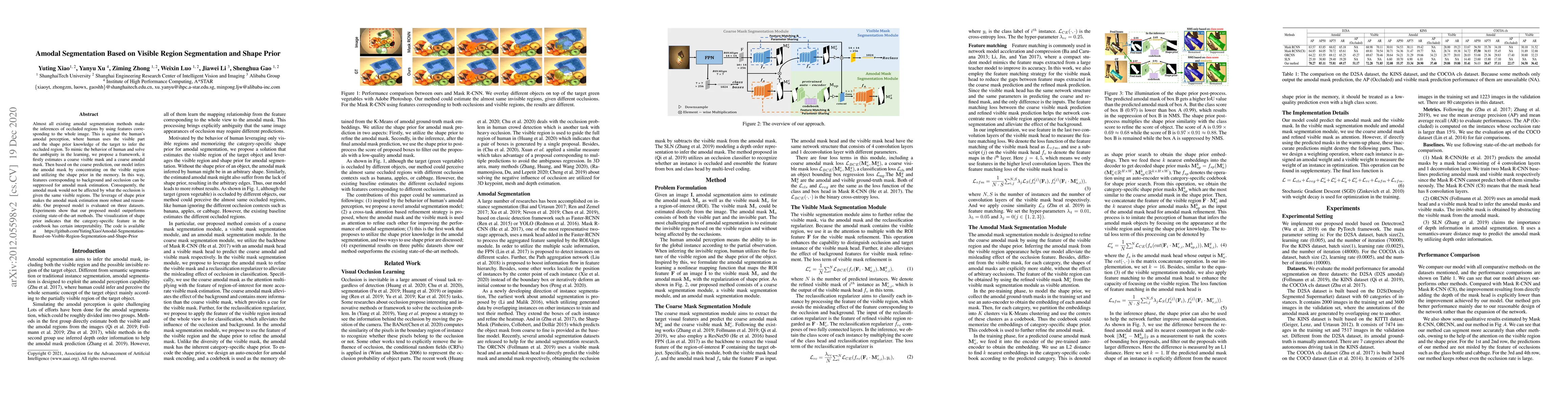 This paper proposes a framework for amodal segmentation that mimics human perception by focusing on visible regions and shape priors to infer occluded areas, outperforming existing methods. The model estimates a coarse visible and amodal mask, then refines the amodal mask by suppressing background and occlusion features, demonstrating robustness and interpretability of shape priors.