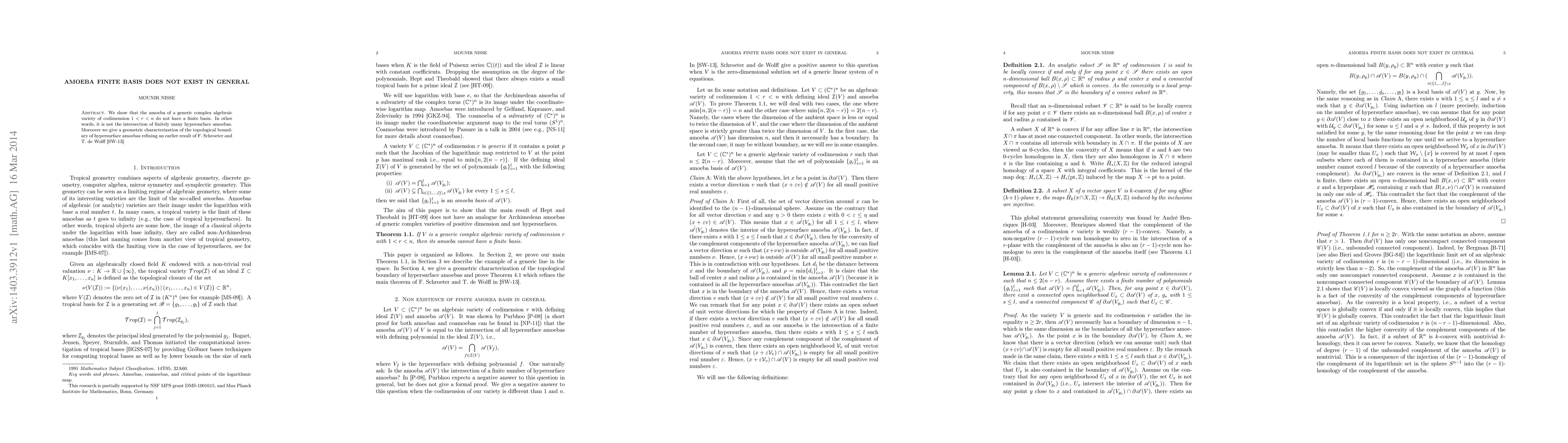 We show that the amoeba of a generic complex algebraic variety of codimension