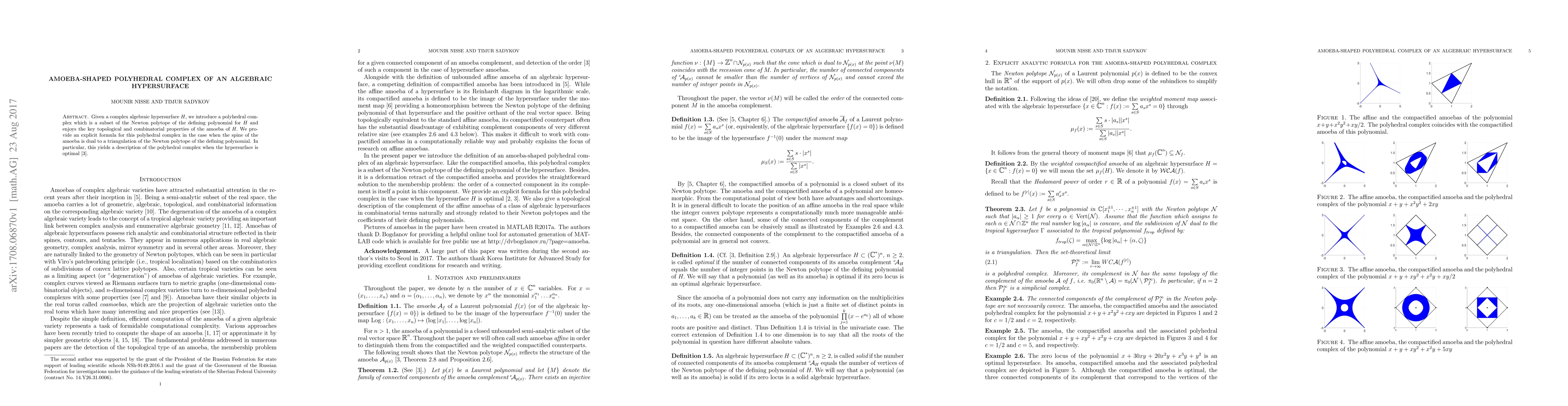 Given a complex algebraic hypersurface~$H$, we introduce a polyhedral complex which is a subset of the Newton polytope of the defining polynomial for~$H$ and enjoys the key topological and combinatorial properties of the amoeba of~$H.$ We provide an explicit formula for this polyhedral complex in the case when the spine of the amoeba is dual to a triangulation of the Newton polytope of the defining polynomial. In particular, this yields a description of the polyhedral complex when the hypersurface is optimal.