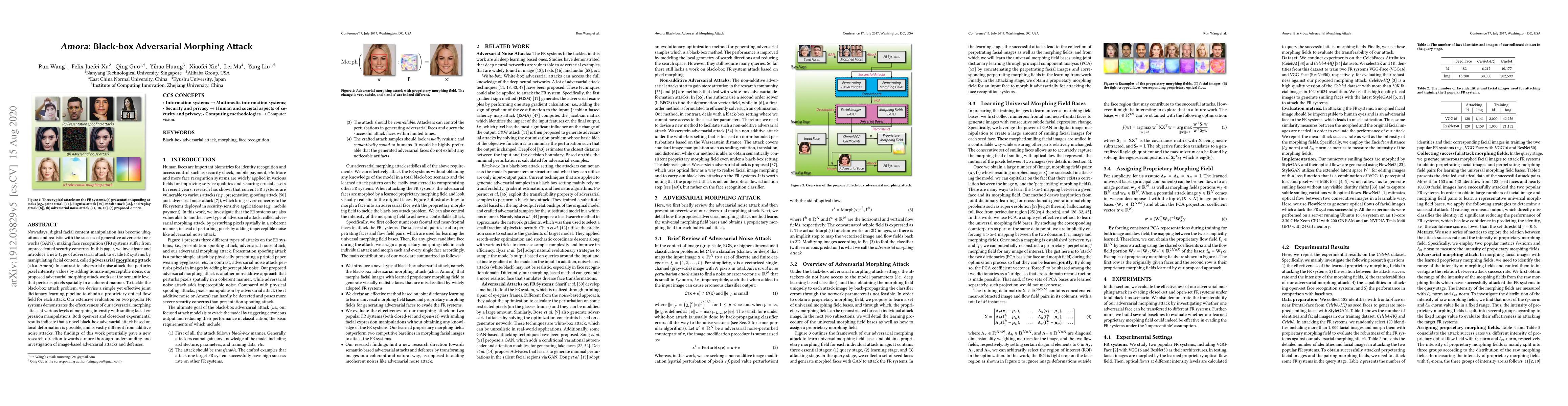 This paper introduces Amora, a new black-box adversarial morphing attack that manipulates facial content at the semantic level to evade face recognition systems, contrasting with traditional pixel-level noise attacks. The attack employs a joint dictionary learning method to generate an optical flow field for effective morphing, demonstrating significant evasion success across various morphing intensities and facial expressions.