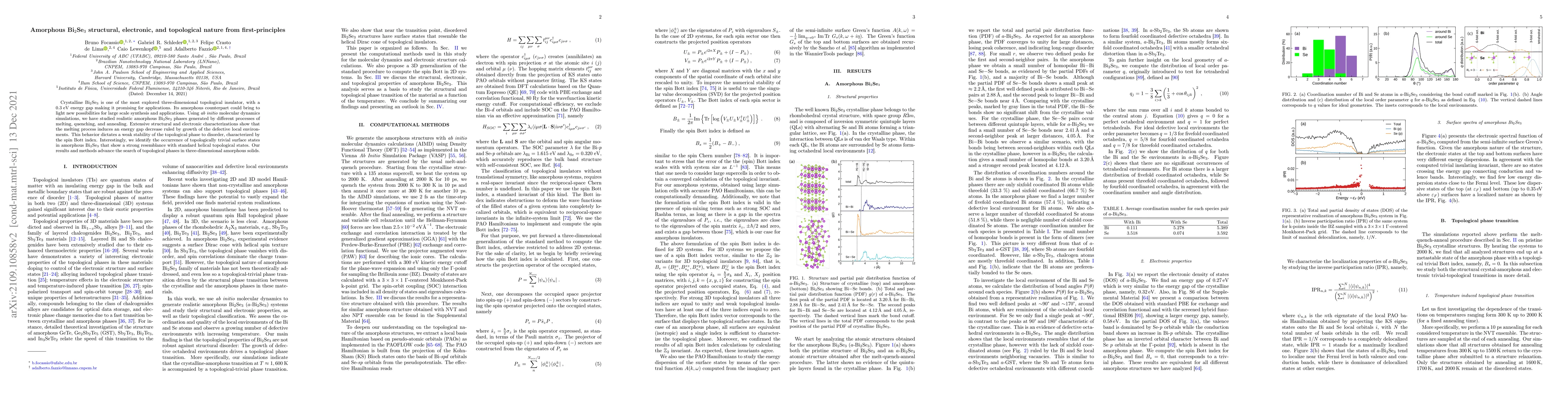 Crystalline $\rm Bi_2Se_3$ is one of the most explored three-dimensional topological insulator, with a $0.3\;\rm eV$ energy gap making it promising for applications. Its amorphous counterpart could bring to light new possibilities for large scale synthesis and applications. Using ab initio molecular dynamics simulations, we have studied realistic amorphous $\rm Bi_2Se_3$ phases generated by different processes of melting, quenching, and annealing. Extensive structural and electronic characterizations show that the melting process induces an energy gap decrease ruled by growth of the defective local environments. This behavior dictates a weak stability of the topological phase to disorder, characterized by the spin Bott index. Interestingly, we identify the occurrence of topologically trivial surface states in amorphous $\rm Bi_2Se_3$ that show a strong resemblance with standard helical topological states. Our results and methods advance the search of topological phases in three-dimensional amorphous solids.