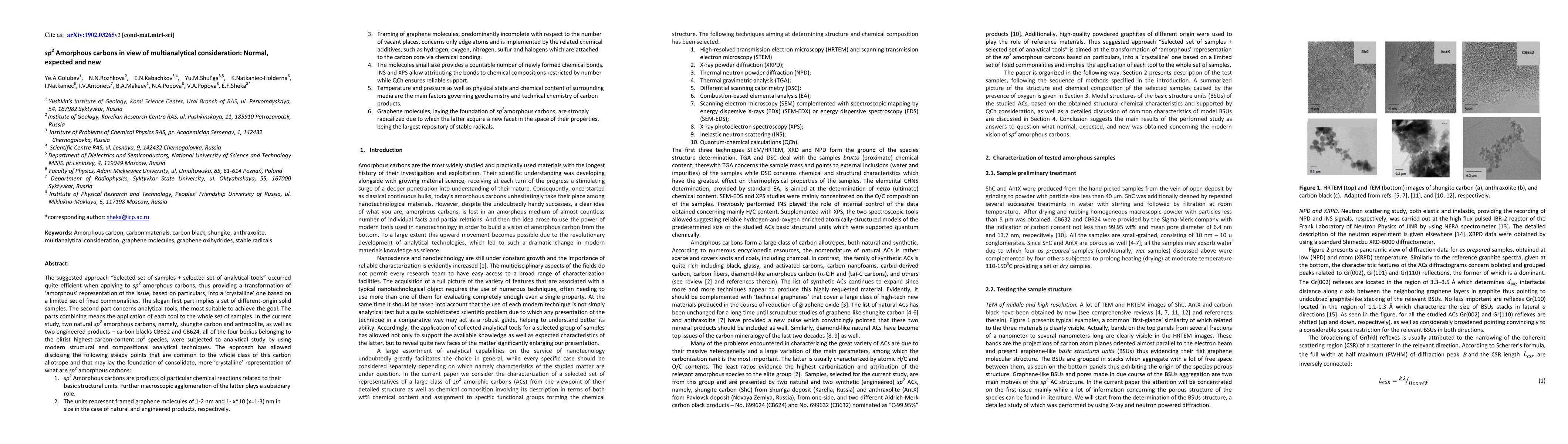 The approach based on selected set of samples and selected set of analytical tools occurred quite efficient when applying to amorphous carbons thus leading to a transformation of the current representation of the issue based on particulars into that one based on a limited set of fixed commonalities. The approach first part implies a set of different origin solid samples. The second part concerns different analytical tools. The combining part means the application of each tool to the whole set of samples. In the current study two natural amorphous carbons shungite carbon and antraxolite, as well as two engineered products carbon blacks CB632 and CB624, all of the four belonging to the elitist highest-carbon-content species, were subjected to analytical study by using modern structural and compositional analytical techniques. The approach has allowed disclosing steady points that are common to the whole class of this carbon allotrope and that may lay the foundation of a consolidate representation of what are amorphous carbons.