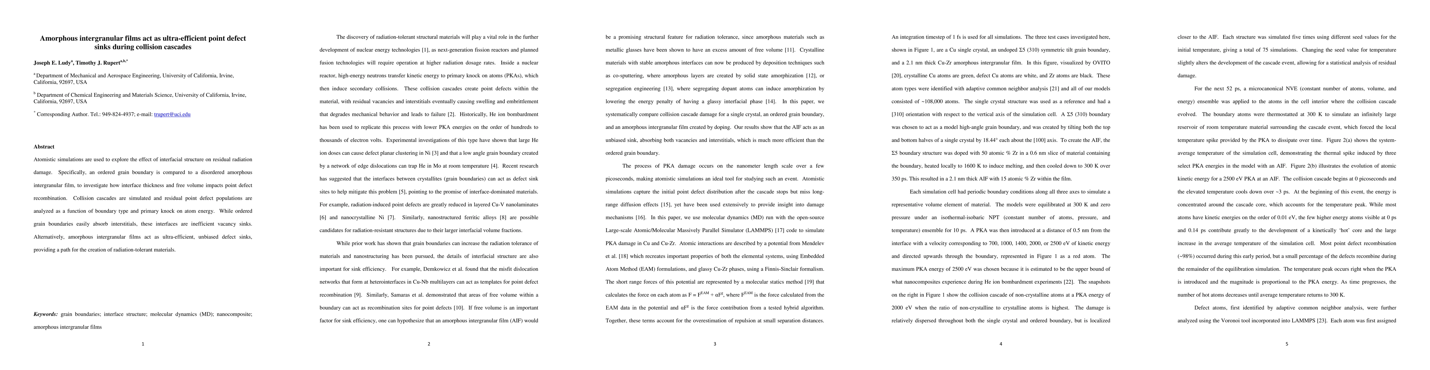 The discovery that amorphous intergranular films can act as ultra-efficient point defect sinks and their increased effective thickness and free volume.
