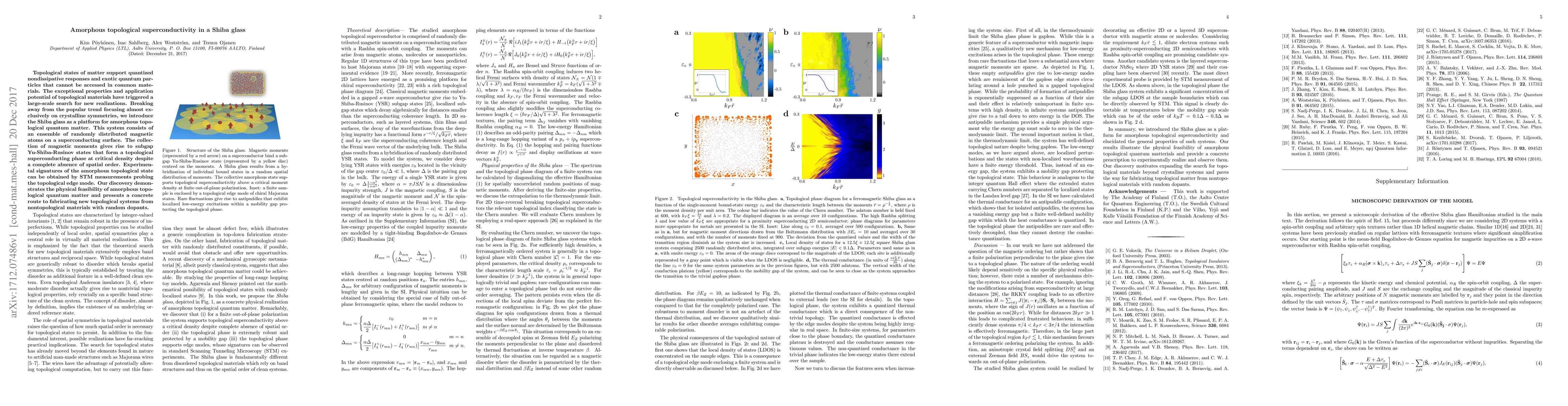 Researchers discovered a new type of topological superconductor in an amorphous material called Shiba glass, which is created by randomly distributed magnetic atoms on a superconducting surface. This finding opens up a new route to fabricating topological systems from non-topological materials with random dopants.