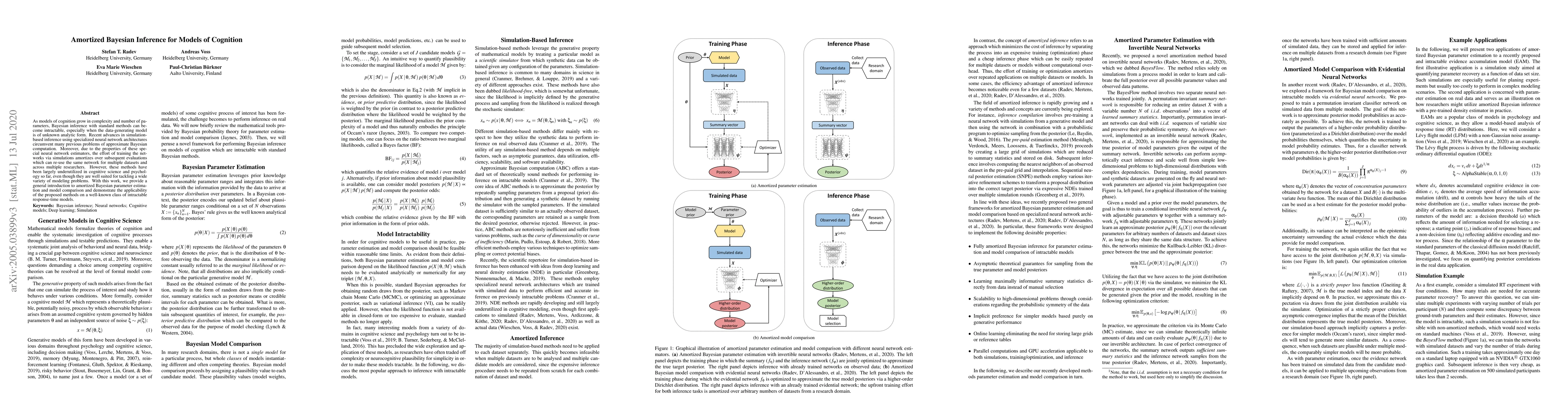 This paper introduces amortized Bayesian inference using neural networks to handle complex cognitive models, demonstrating its efficiency through simulation-based inference and its potential to reduce computational costs across multiple datasets. The authors showcase its application on intractable response-time models, highlighting its utility in cognitive science.