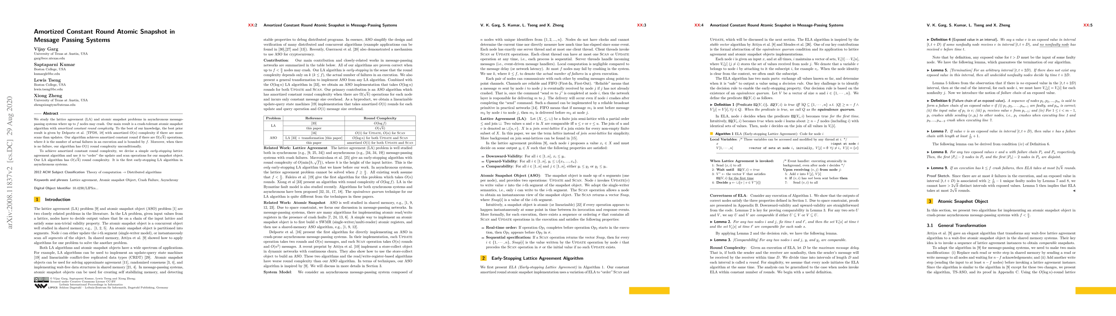 This paper presents a crash-tolerant atomic snapshot algorithm in asynchronous message-passing systems with amortized constant round complexity under certain conditions, improving upon prior results. It achieves this through an innovative early-stopping lattice agreement algorithm with $O(\sqrt{k})$ round complexity.