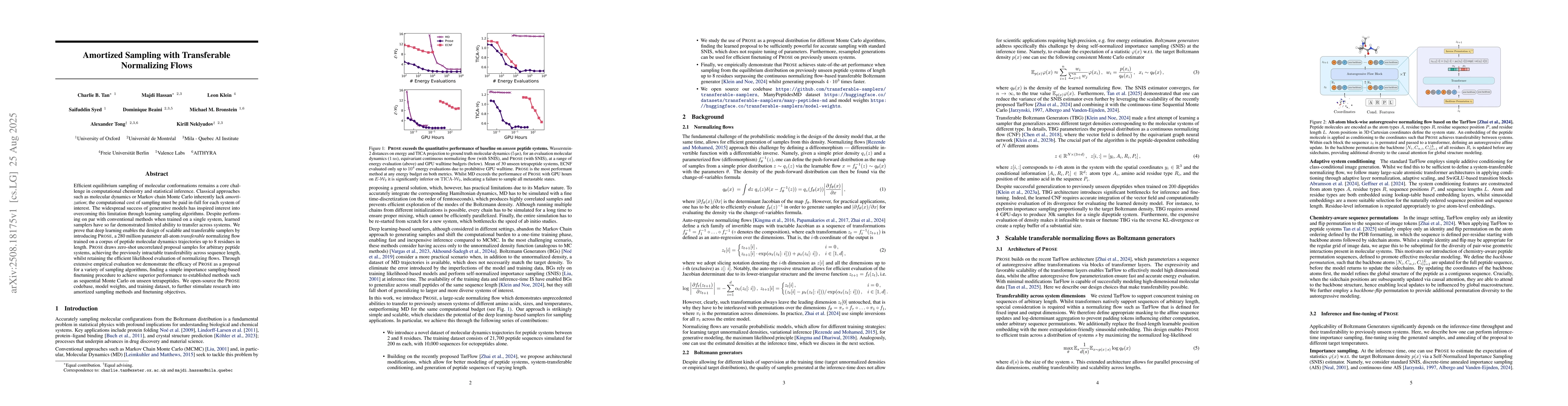 Efficient equilibrium sampling of molecular conformations remains a core challenge in computational chemistry and statistical inference. Classical approaches such as molecular dynamics or Markov chain Monte Carlo inherently lack amortization; the computational cost of sampling must be paid in-full for each system of interest. The widespread success of generative models has inspired interest into overcoming this limitation through learning sampling algorithms. Despite performing on par with conventional methods when trained on a single system, learned samplers have so far demonstrated limited ability to transfer across systems. We prove that deep learning enables the design of scalable and transferable samplers by introducing Prose, a 280 million parameter all-atom transferable normalizing flow trained on a corpus of peptide molecular dynamics trajectories up to 8 residues in length. Prose draws zero-shot uncorrelated proposal samples for arbitrary peptide systems, achieving the previously intractable transferability across sequence length, whilst retaining the efficient likelihood evaluation of normalizing flows. Through extensive empirical evaluation we demonstrate the efficacy of Prose as a proposal for a variety of sampling algorithms, finding a simple importance sampling-based finetuning procedure to achieve superior performance to established methods such as sequential Monte Carlo on unseen tetrapeptides. We open-source the Prose codebase, model weights, and training dataset, to further stimulate research into amortized sampling methods and finetuning objectives.