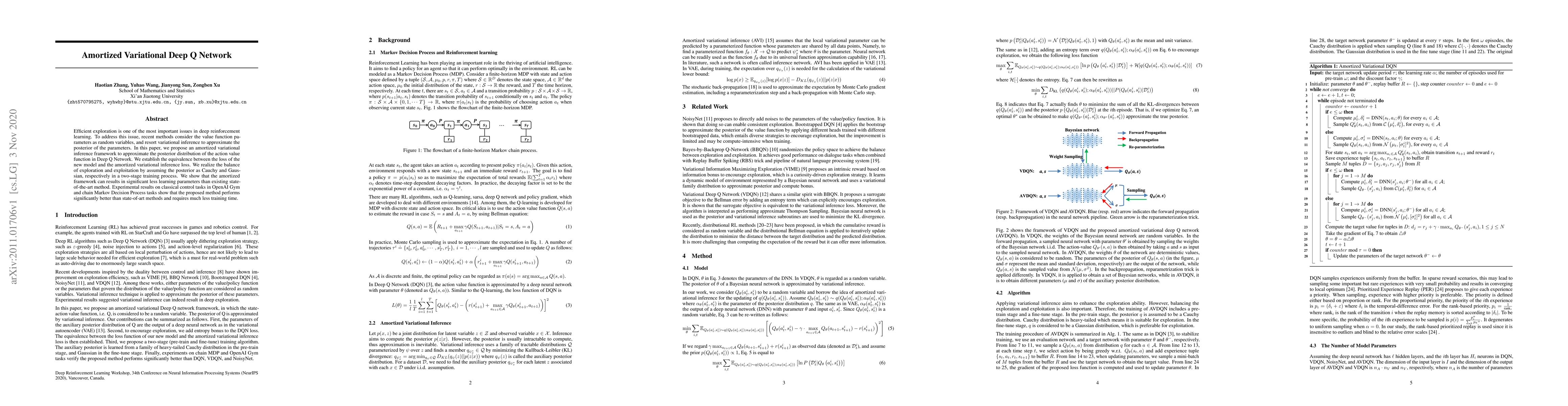 Efficient exploration is one of the most important issues in deep reinforcement learning. To address this issue, recent methods consider the value function parameters as random variables, and resort variational inference to approximate the posterior of the parameters. In this paper, we propose an amortized variational inference framework to approximate the posterior distribution of the action value function in Deep Q Network. We establish the equivalence between the loss of the new model and the amortized variational inference loss. We realize the balance of exploration and exploitation by assuming the posterior as Cauchy and Gaussian, respectively in a two-stage training process. We show that the amortized framework can results in significant less learning parameters than existing state-of-the-art method. Experimental results on classical control tasks in OpenAI Gym and chain Markov Decision Process tasks show that the proposed method performs significantly better than state-of-art methods and requires much less training time.