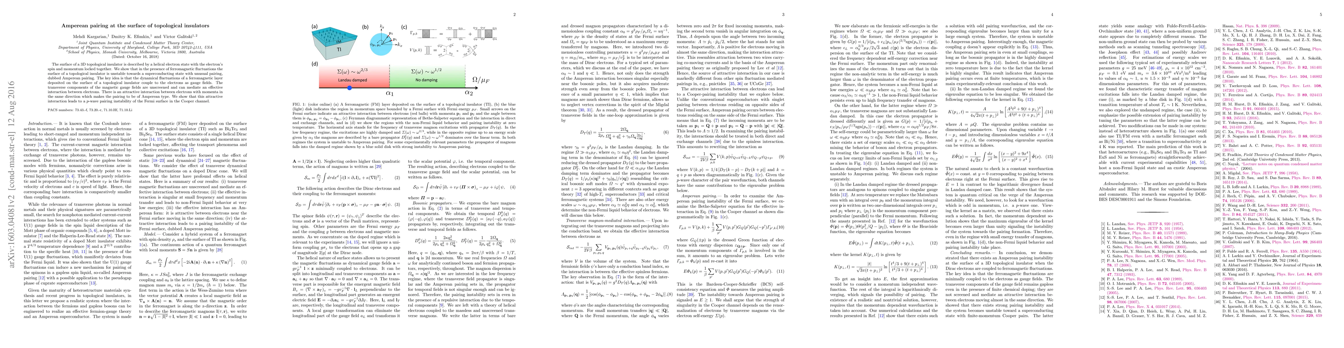 The surface of a 3D topological insulator is described by a helical electron state with the electron's spin and momentum locked together. We show that in the presence of ferromagnetic fluctuations the surface of a topological insulator is unstable towards a superconducting state with unusual pairing, dubbed Amperean pairing. The key idea is that the dynamical fluctuations of a ferromagnetic layer deposited on the surface of a topological insulator couple to the electrons as gauge fields. The transverse components of the magnetic gauge fields are unscreened and can mediate an effective interaction between electrons. There is an attractive interaction between electrons with momenta in the same direction which makes the pairing to be of Amperean type. We show that this attractive interaction leads to a $p$-wave pairing instability of the Fermi surface in the Cooper channel.