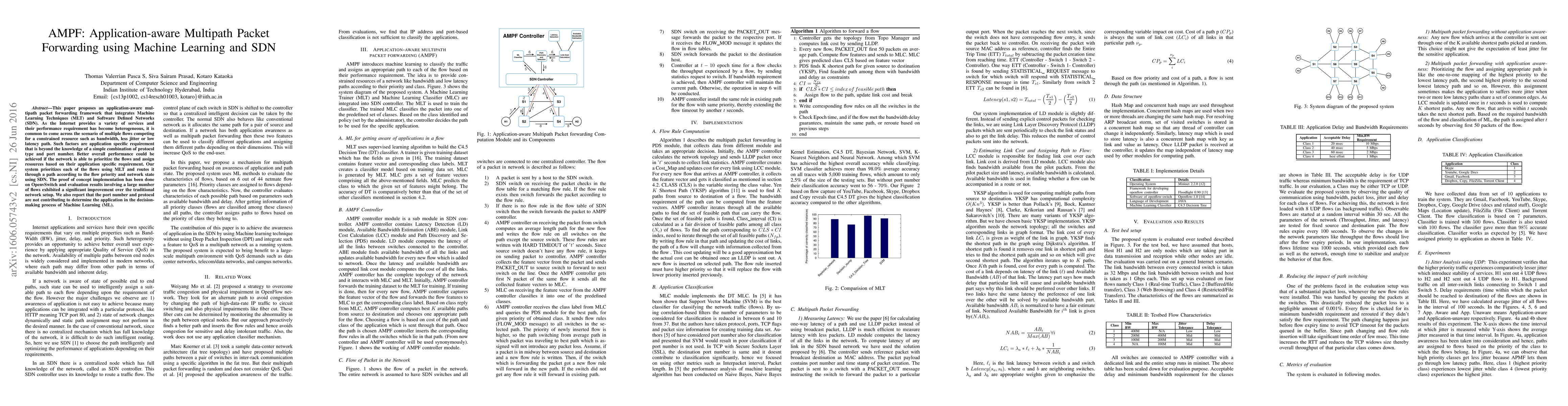 The paper presents AMPF, a framework using Machine Learning and SDN to prioritize network flows based on application-specific requirements, improving performance over traditional setups. It finds that port numbers and protocols aren't useful in determining applications for ML.