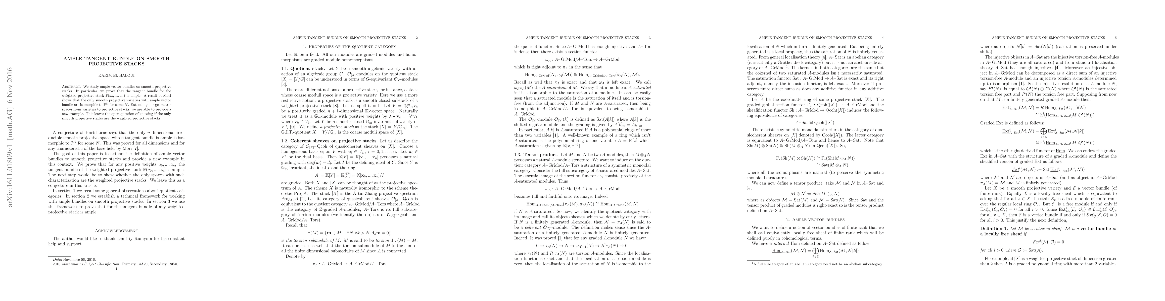 This paper proves that the tangent bundle of the weighted projective stack $\mathbb{P}(a_0,...,a_n)$ is ample, extending the notion of ample vector bundles from smooth projective varieties to smooth projective stacks. It raises the question of whether weighted projective stacks are the only such smooth projective stacks.