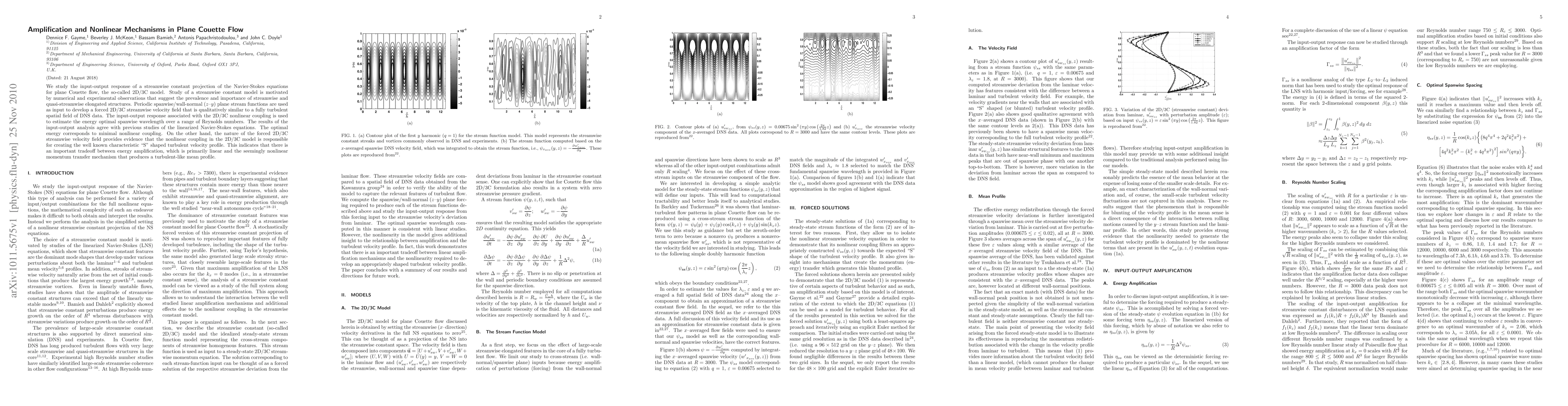 Researchers studied a 2D/3C model of plane Couette flow to understand how energy is amplified and transferred in turbulent flows, finding that nonlinear mechanisms create the characteristic S-shaped velocity profile.