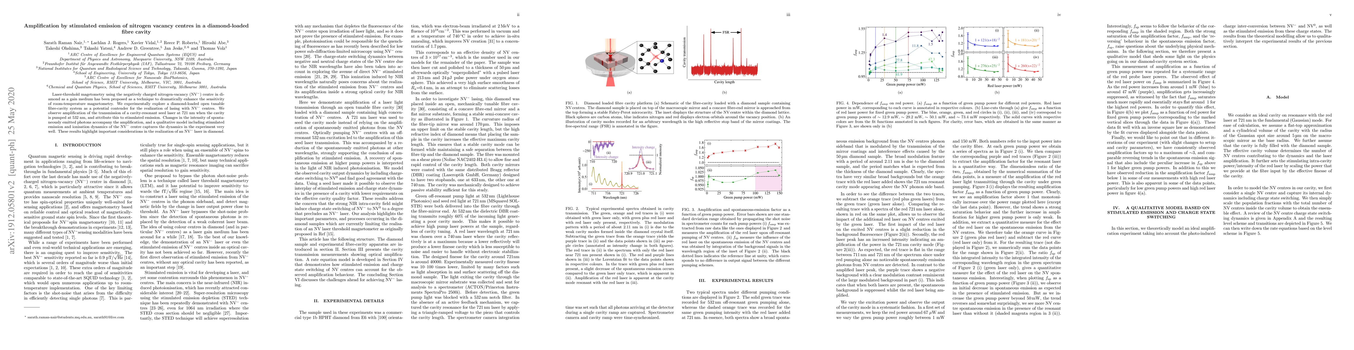 This research demonstrates amplification of a seed laser through stimulated emission within a diamond-loaded fibre cavity, utilizing nitrogen vacancy centres as a gain medium, which holds promise for enhancing room-temperature magnetometry sensitivity. The study highlights essential factors for the potential development of an NV-centre laser.