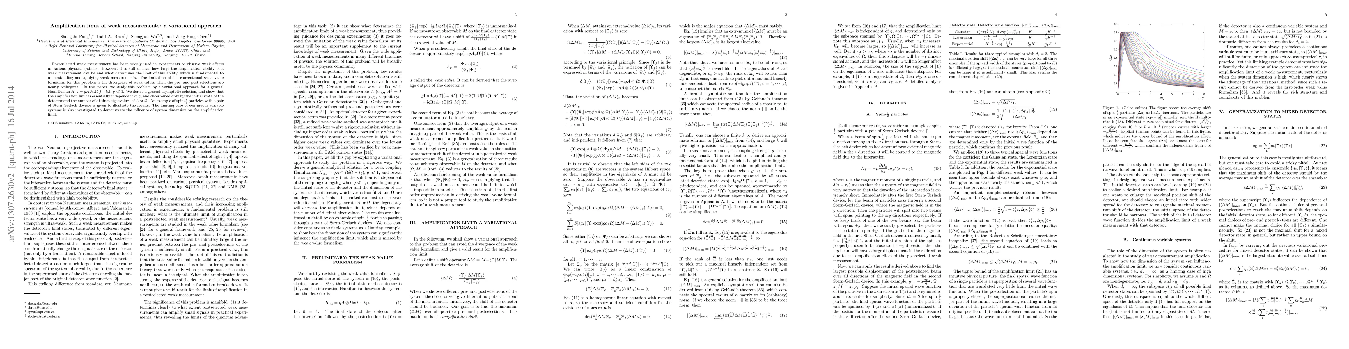 This paper investigates the amplification limit of weak measurements using a variational approach, finding that the limit is independent of the interaction strength and primarily determined by the initial detector state and the number of distinct eigenvalues of the measurement operators. An example with spin-$\frac{1}{2}$ particles and a discussion on continuous variable systems illustrate these findings.