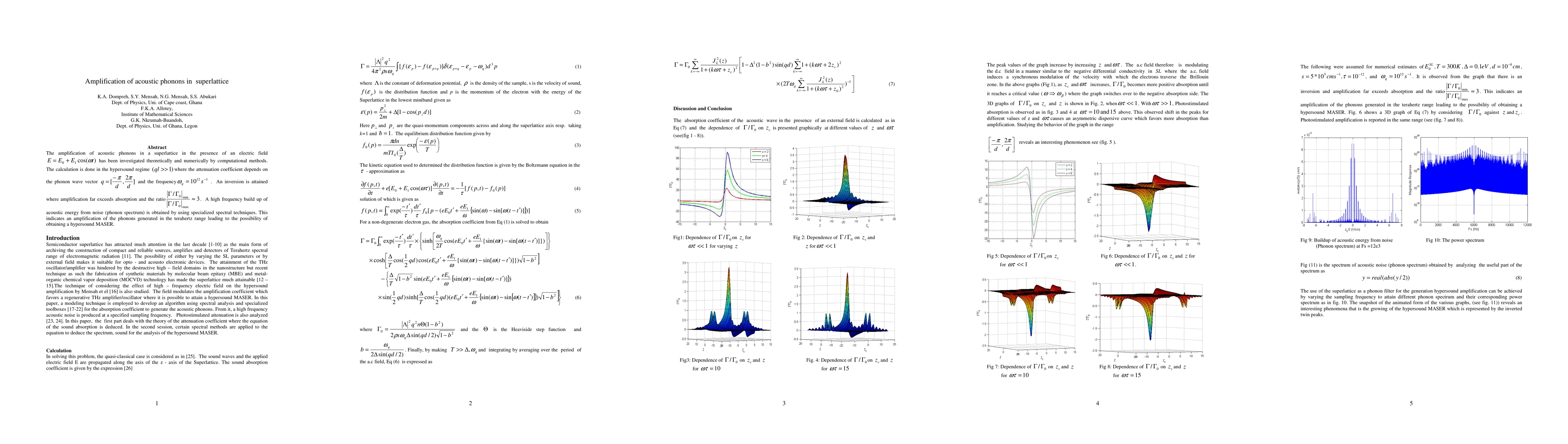 The research investigates acoustic phonon amplification in a superlattice under an electric field using computational methods.